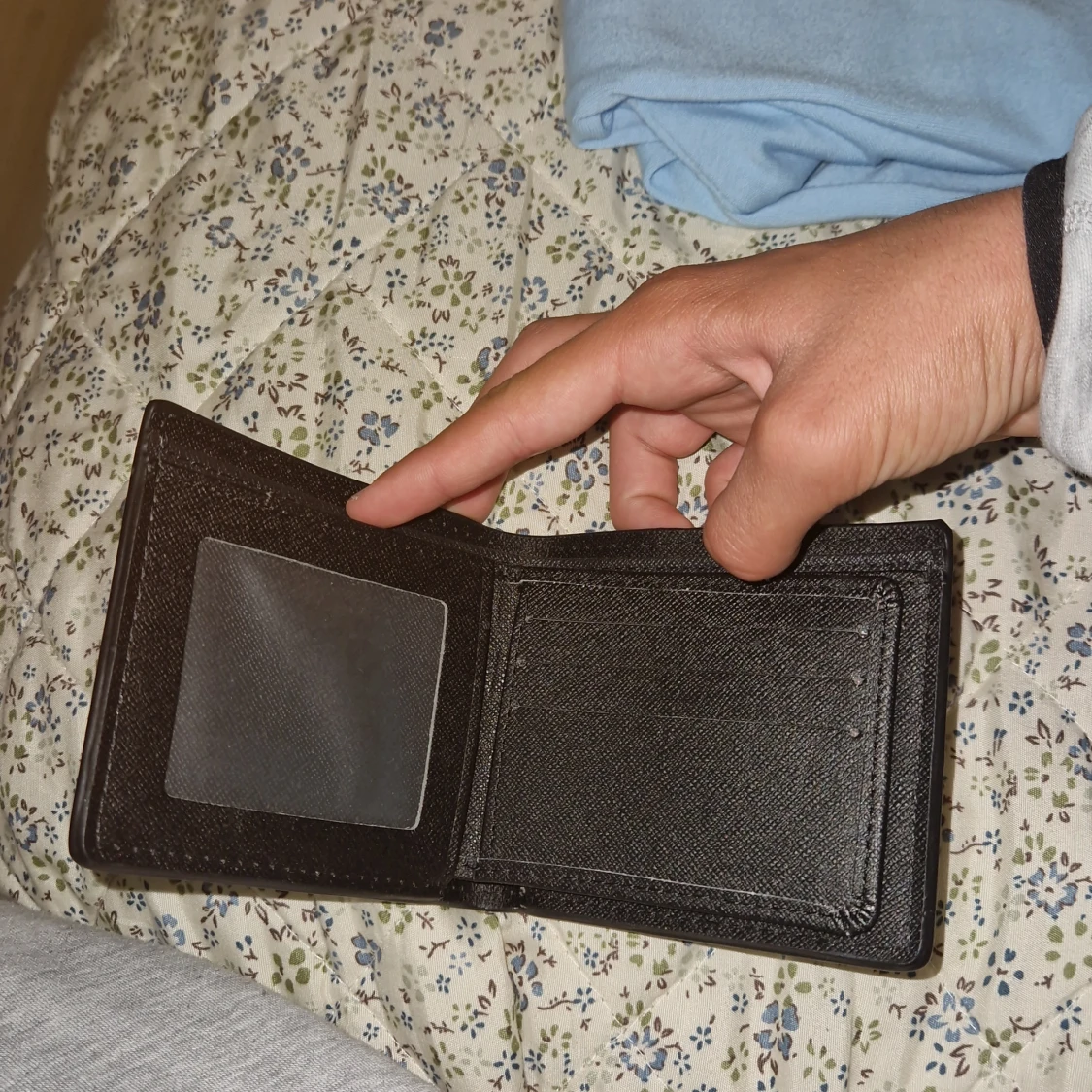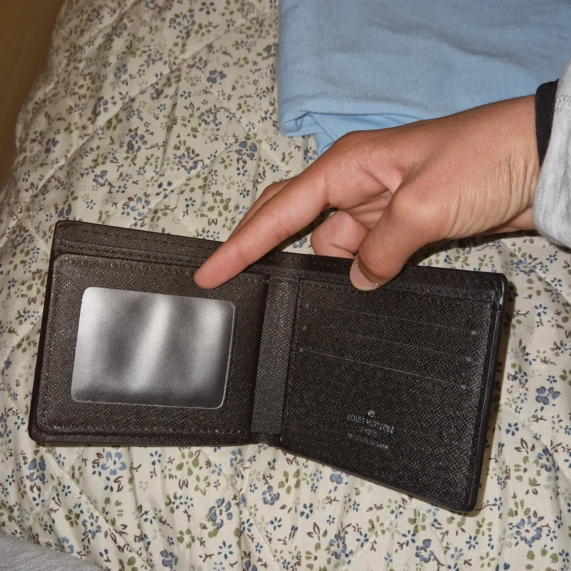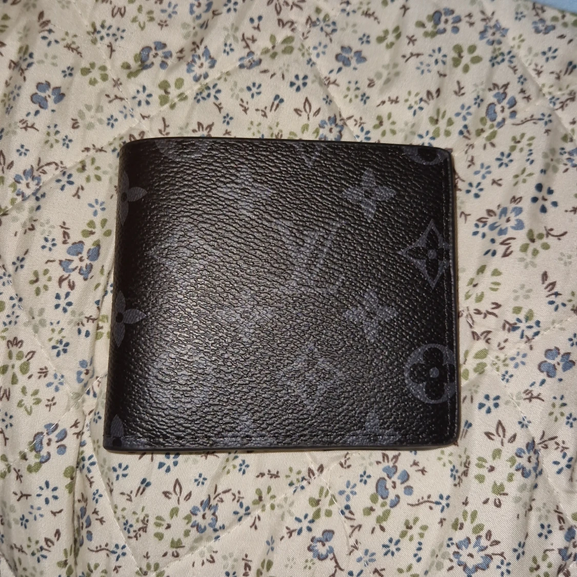 Säljer en svart plånbok från Louis Vuitton med klassiskt monogrammönster. Plånboken har flera kortfack, fönster för ID och är tillverkad i exklusivt skinn. Perfekt för dig som vill ha en stilren och lyxig accessoar i fickan.