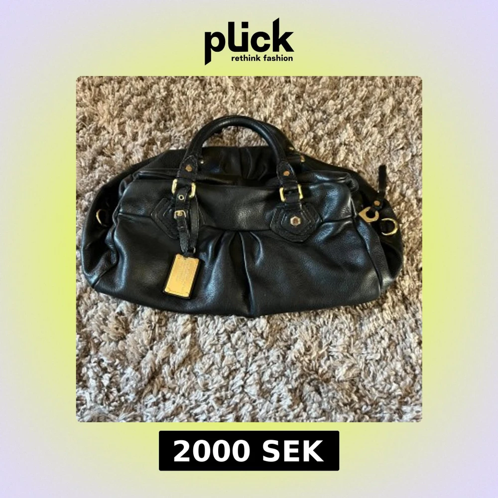 Snygg svart skinnväska från Marc by Marc Jacobs med gulddetaljer och dragkedja. Väskan har ett stilrent mönster inuti och en elegant metallbricka framtill. Perfekt för att ge din outfit en lyxig touch. Har köpt väskan secondhand och därav inte helt 100 på äktheten💞💞💞
