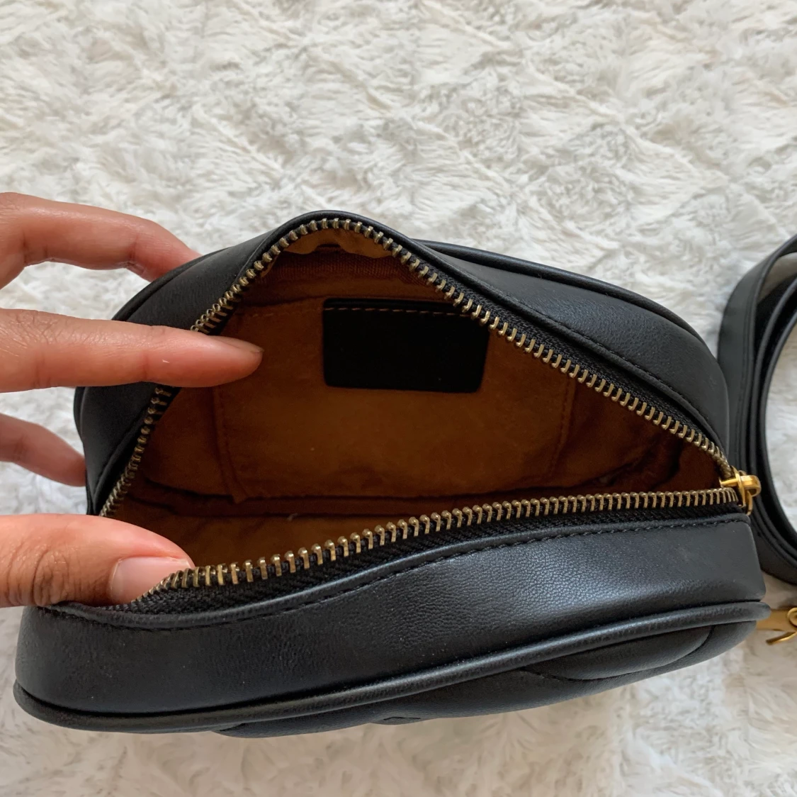Matt, svart midjeväska med guld detaljer. Helt ny! Aldrig använd. Har en innerficka utan dragkedja.