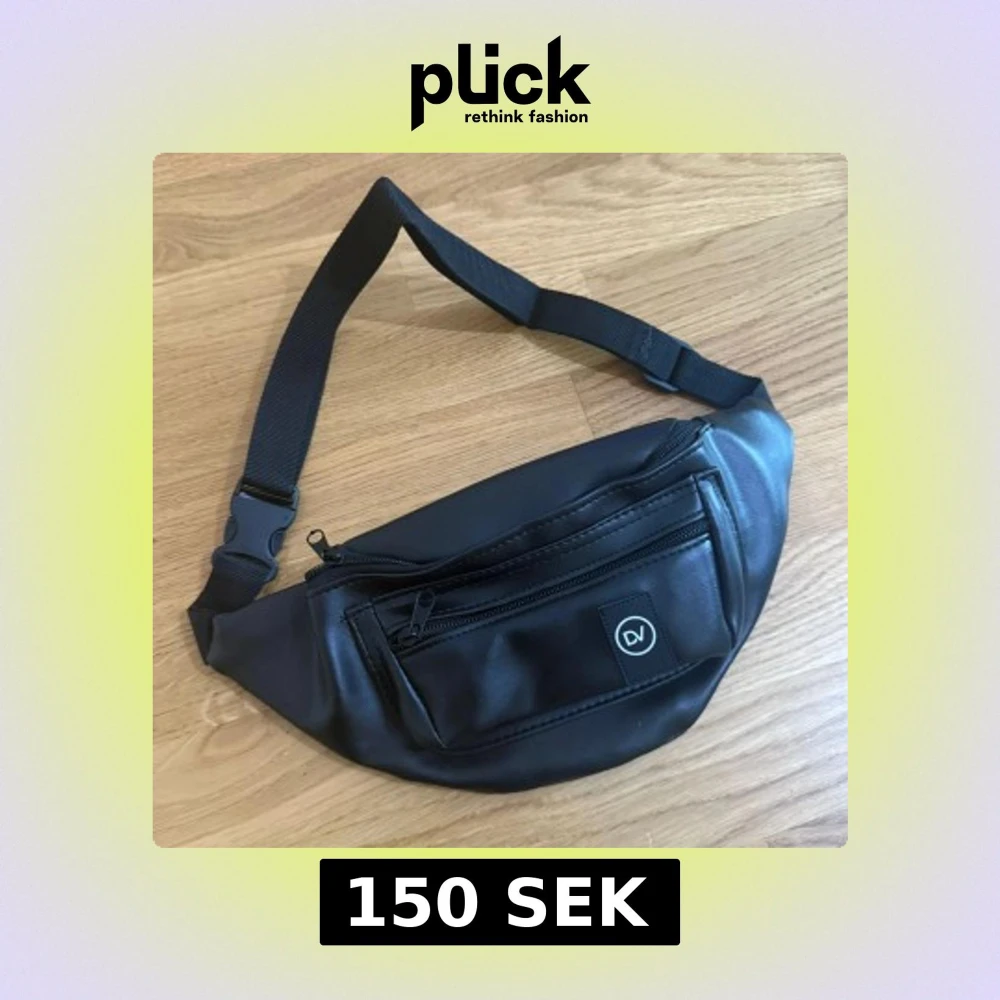 Helt Ny!!! Snygg svart magväska från DV i skinnimitation med justerbart band och två dragkedjefack framtill. Perfekt för att bära mobilen, plånboken och andra småprylar. Enkel och stilren design med DV-logga på framsidan.