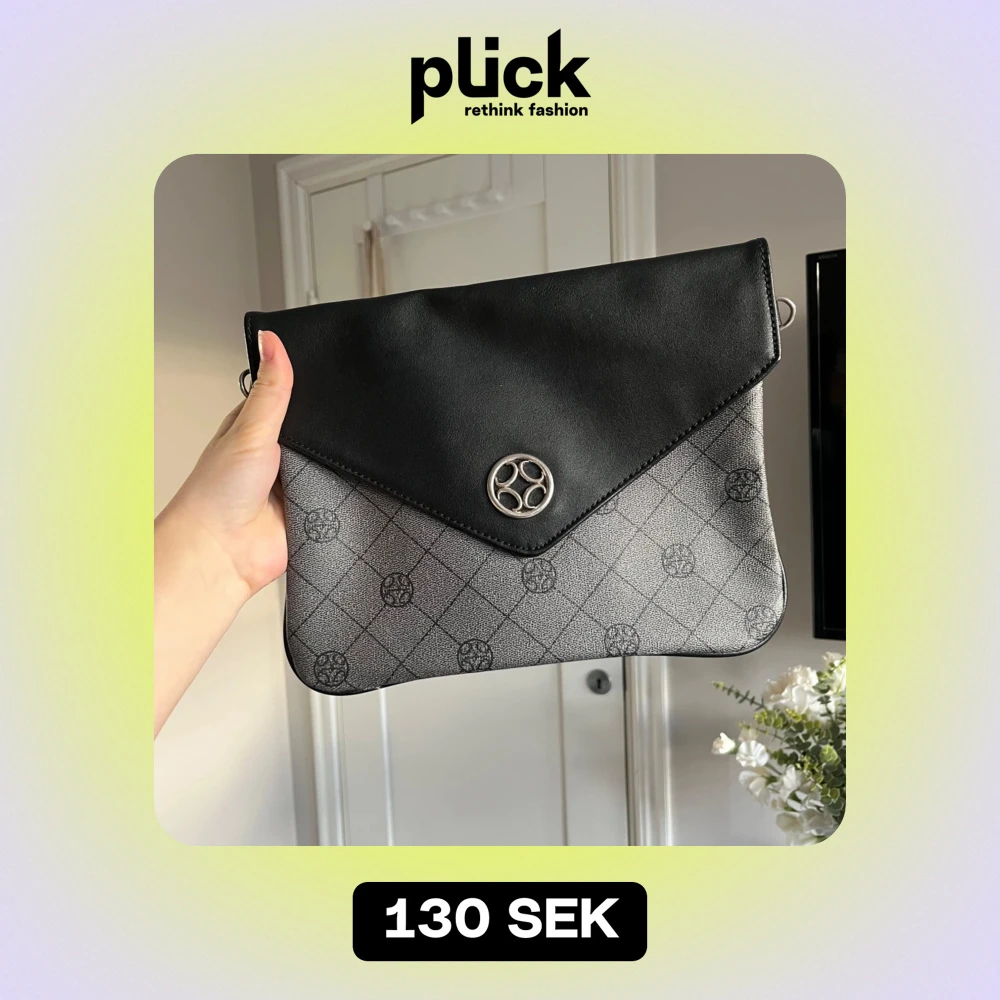 Snygg kuvertväska i svart och grått med ett elegant mönster. Axelband tillkommer även. Vet inte original priset men den är köpt på Lundbergsväskor för ett par år sedan.