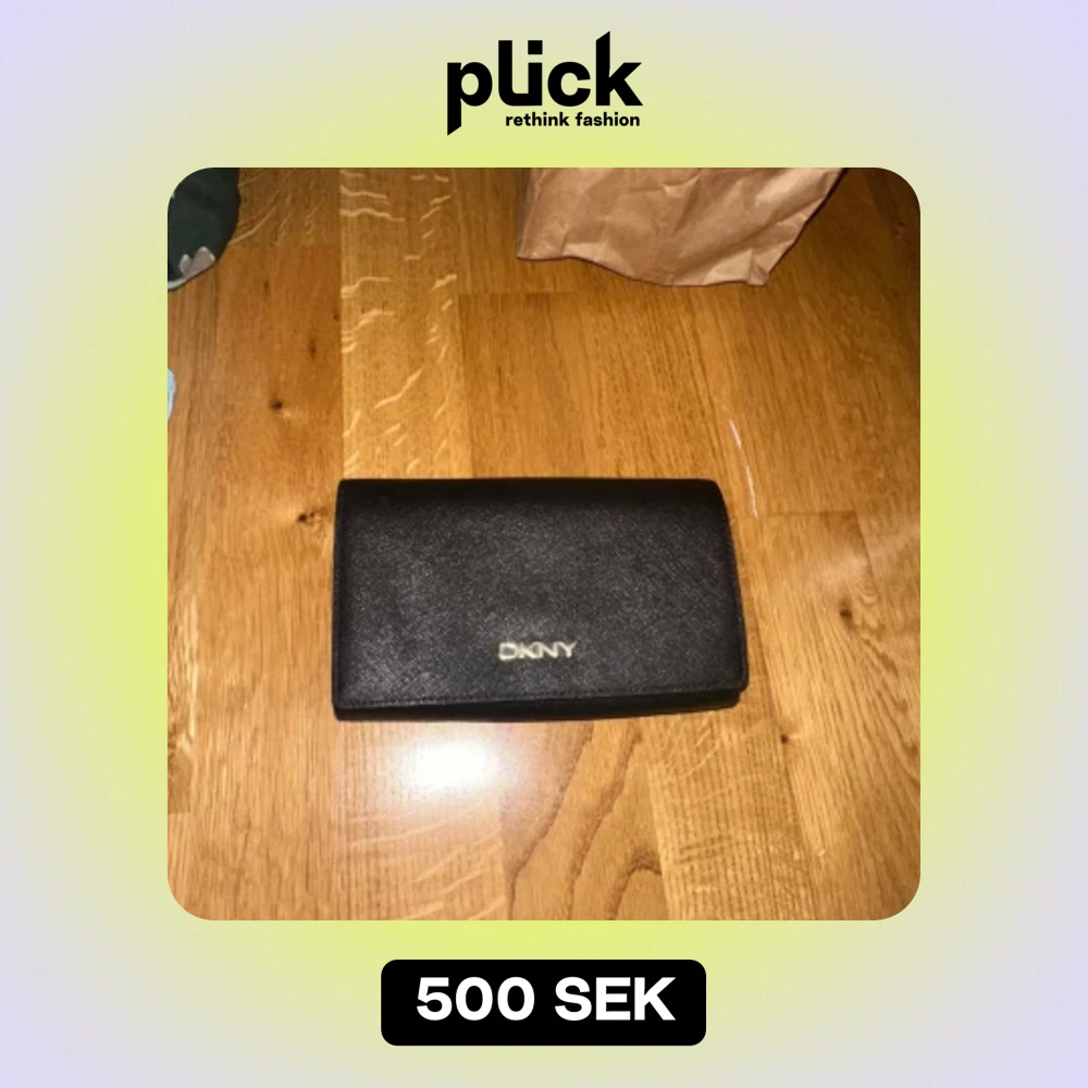 Säljer en stilren och elegant svart plånbok från DKNY. Den är gjord i ett snyggt syntetmaterial och har en praktisk design med flera fack och en dragkedja för mynt. Perfekt för att hålla ordning på kort och kontanter. Den är i bra skick och redo för en ny ägare!