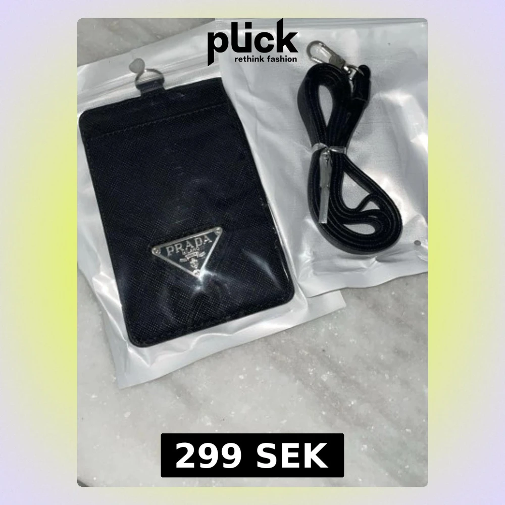 Säljer en stilren svart plånbok från P med klassisk trekantig metallogo framtill. Väskan är tillverkad i slitstarkt syntetmaterial och kommer med en matchande svart axelrem med metallspänne. Perfekt för att bära det viktigaste på ett snyggt sätt.
