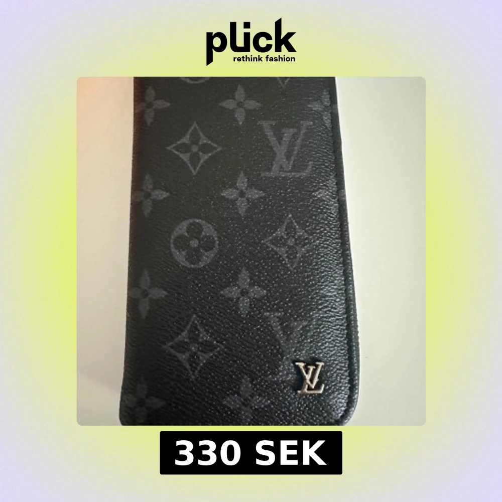 Snygg svart plånbok med klassiskt monogrammönster och silverfärgad logga. Plånboken har dragkedja runtom, flera kortfack och fack för sedlar. Perfekt för dig som gillar lyxiga accessoarer med stilren design.