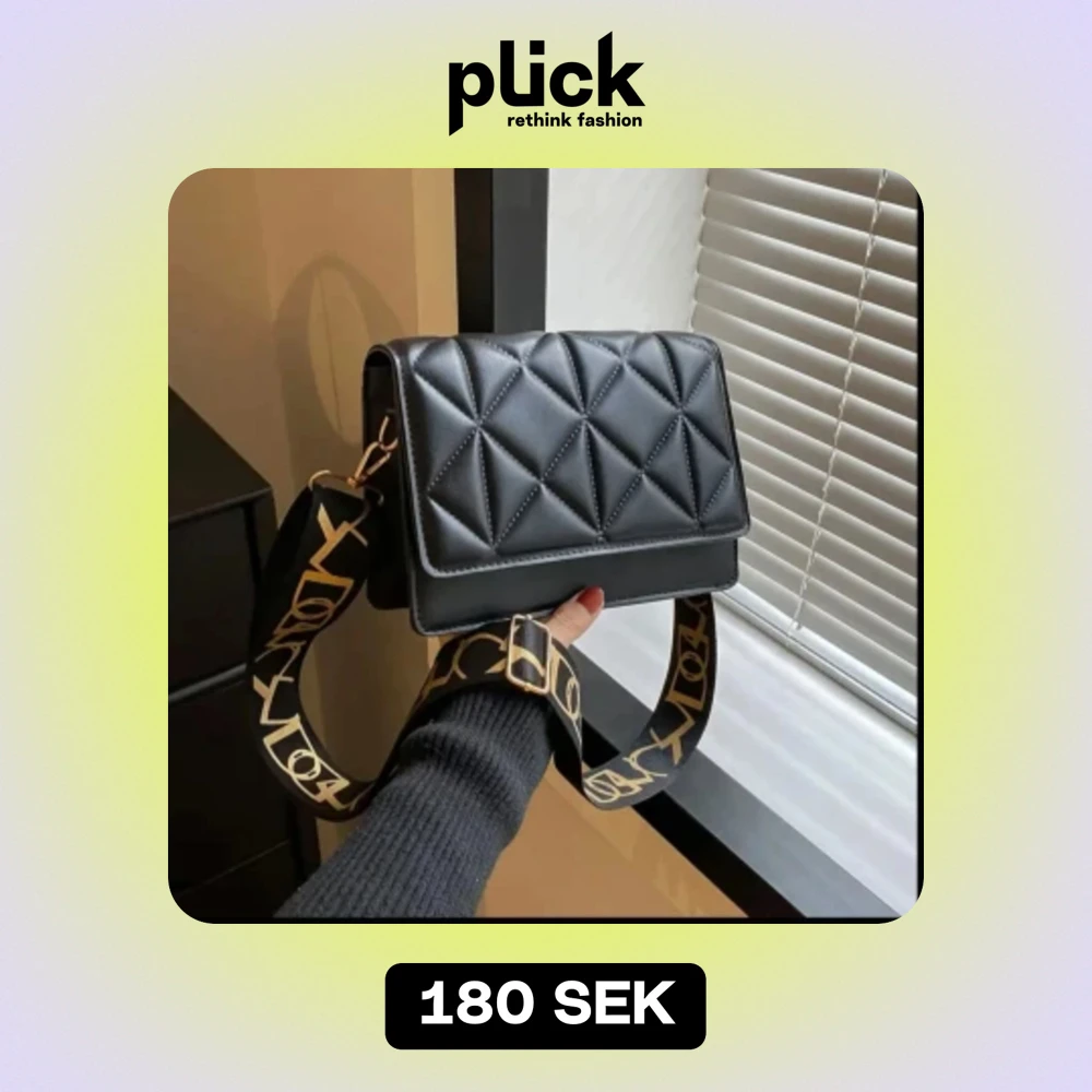 Snygg svart axelväska med quiltat mönster och justerbar axelrem med guldiga detaljer. Perfekt för både vardag och fest! 🖤 helt ny