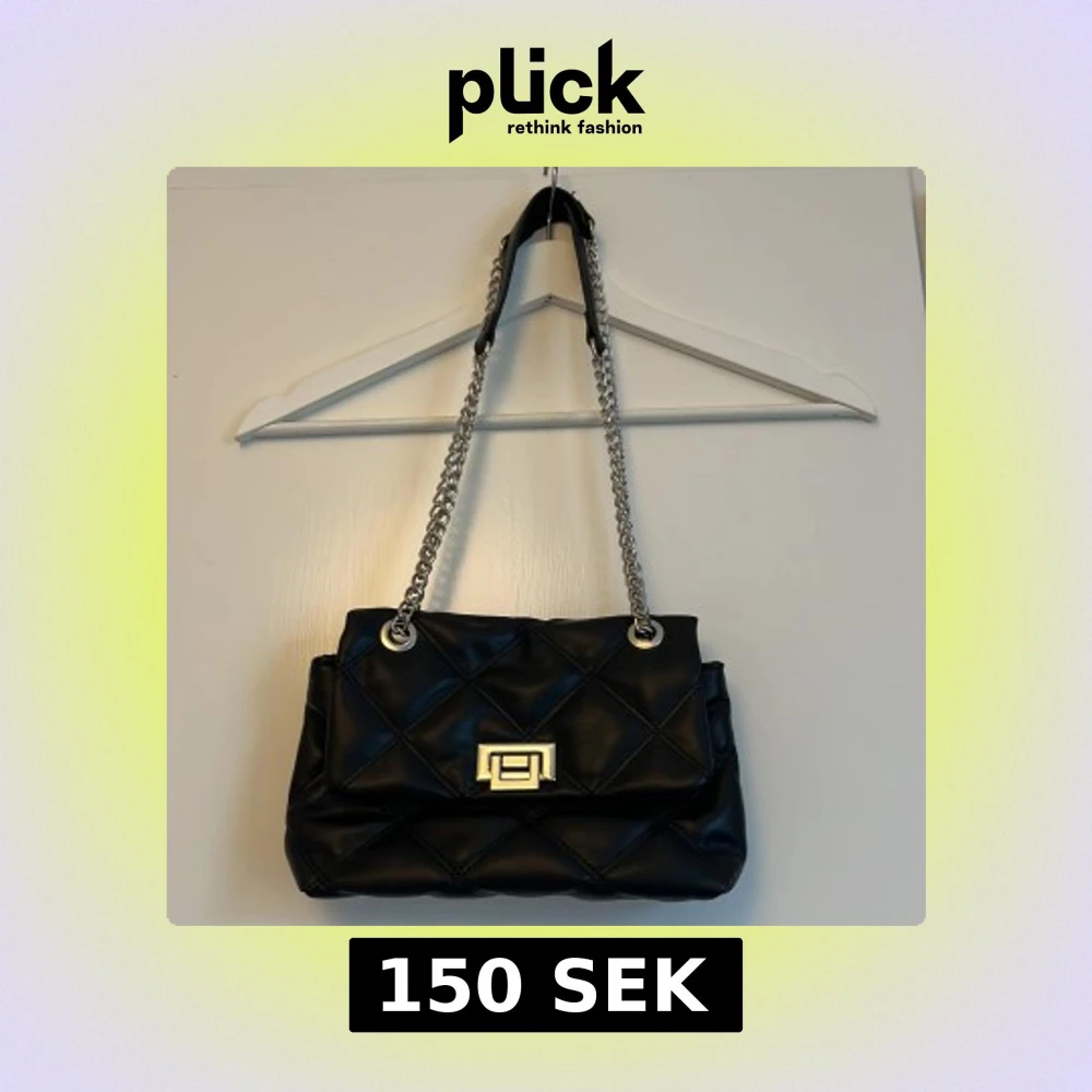 Snygg svart axelväska i quiltad design med silverfärgad kedjerem och metallspänne framtill. Väskan har en mjuk, puffig känsla och klassisk rektangulär form. Perfekt för att lyfta vilken outfit som helst med en trendig touch.