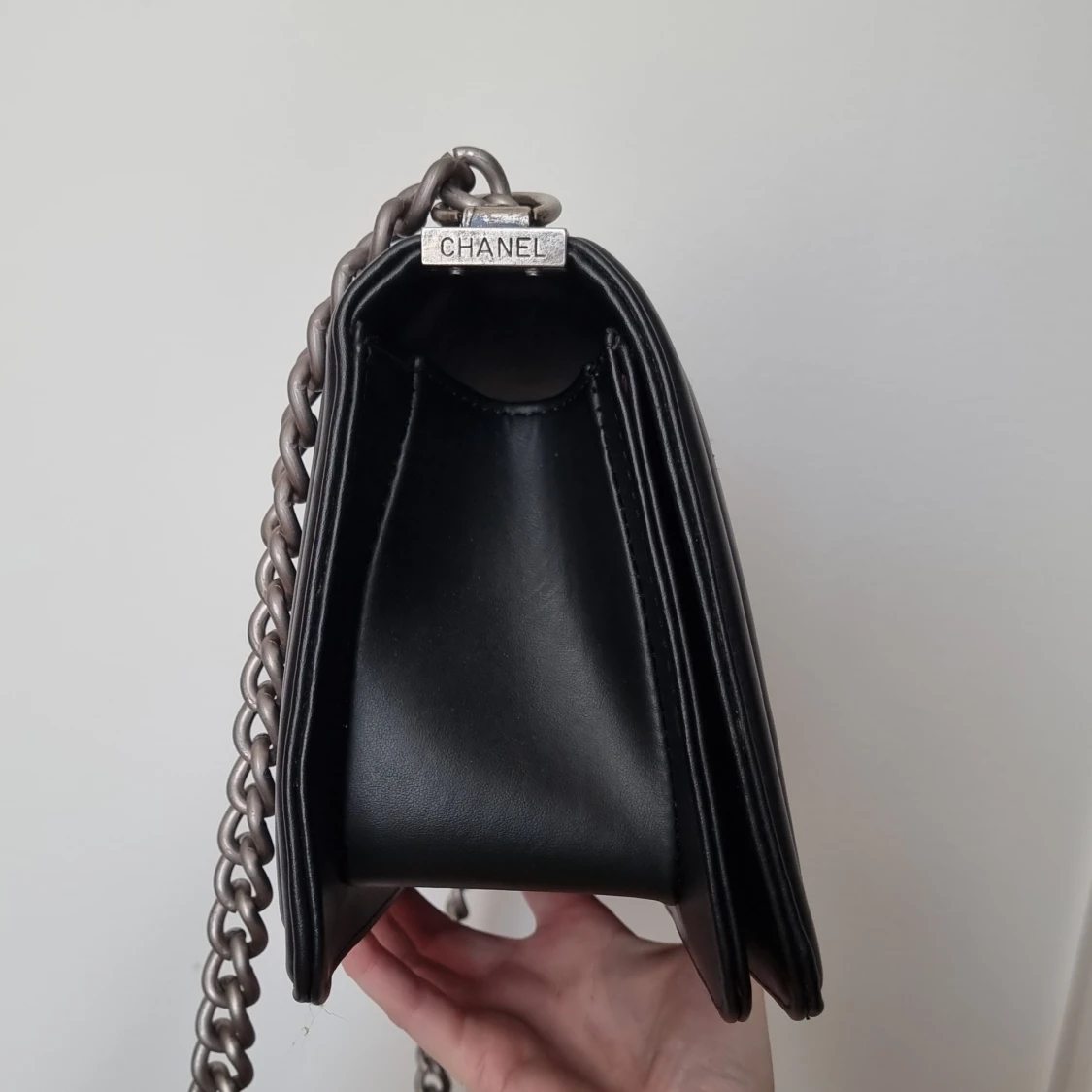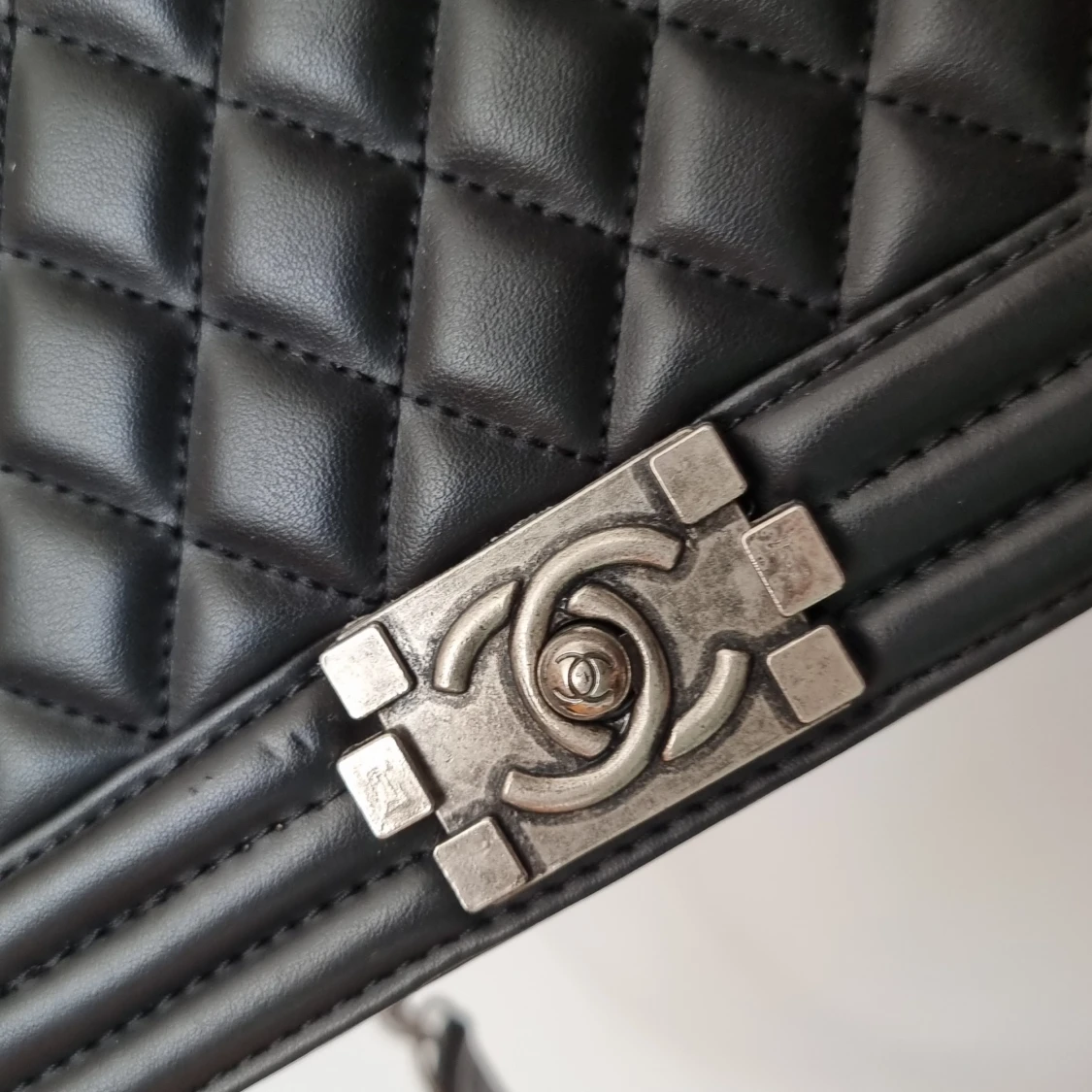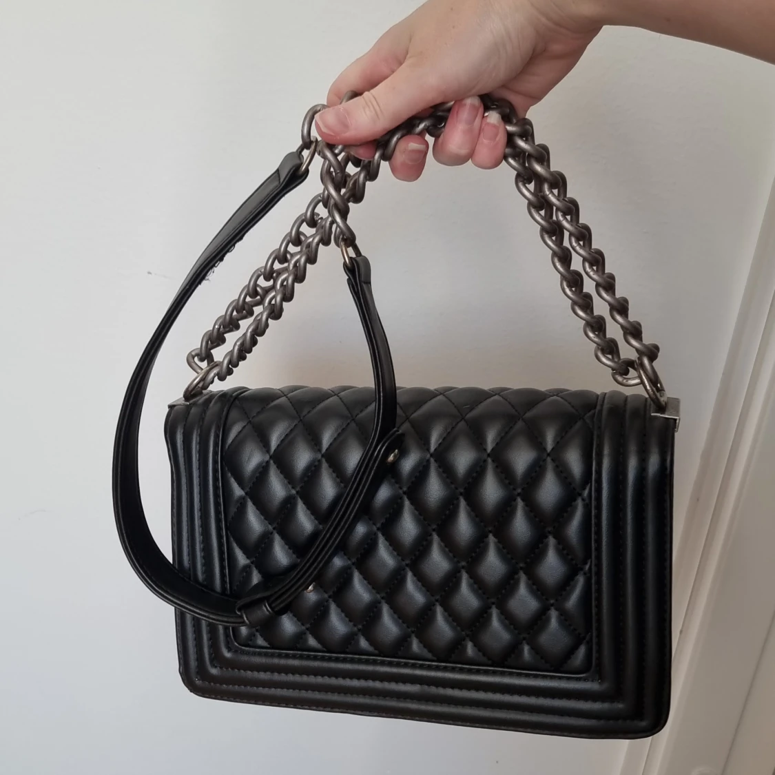 Säljer en ikonisk svart Bag i quiltat skinn med silverfärgad kedjerem och klassiskt CC-lås framtill. Väskan har en boxig form och coola detaljer i metall. Perfekt för dig som vill ha en statementväska med lyxig känsla och tidlös design.
