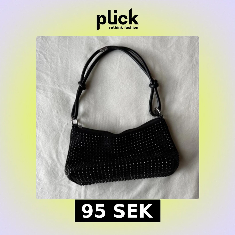 Svart axelväska med rhinestones, insidan har ett extra fack med dragkedja. Ej justerbar. Aldrig använt. Fraktar inom 24h!