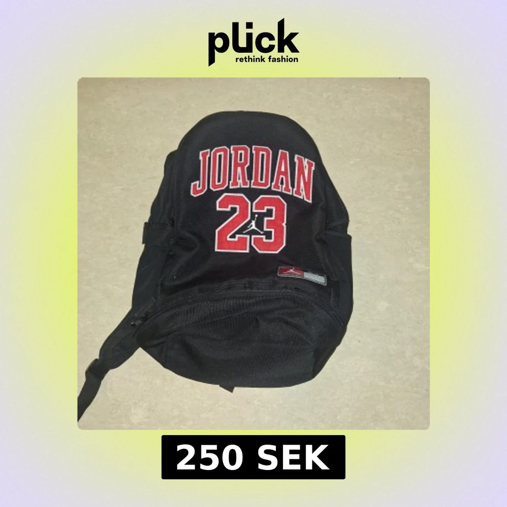 Cool svart ryggsäck från Jordan med stort tryck av 'JORDAN 23' i rött och vitt. Billigare vid snabbaffär