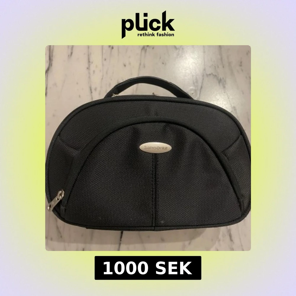 Säljer en svart datorväska från Samsonite med praktiskt handtag och flera dragkedjor. Väskan är tillverkad i slitstark polyester och har en stilren, rundad form. Perfekt för att bära laptop och tillbehör. Enkel och snygg design med diskret logga framtill.