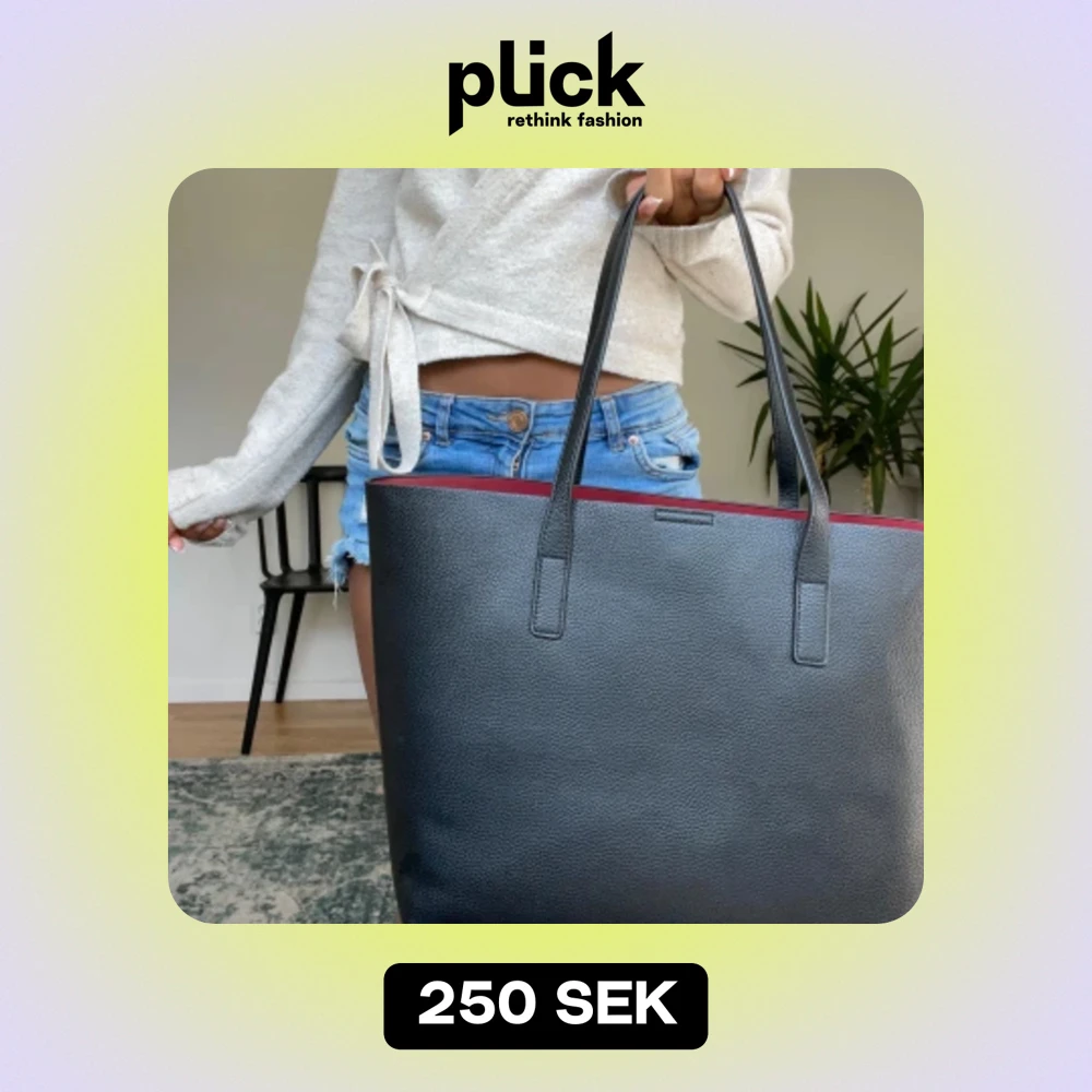 svart shoppingväska från Even & Odd med röd insida. Väskan har två handtag och en liten ficka på insidan. helt oanvänd