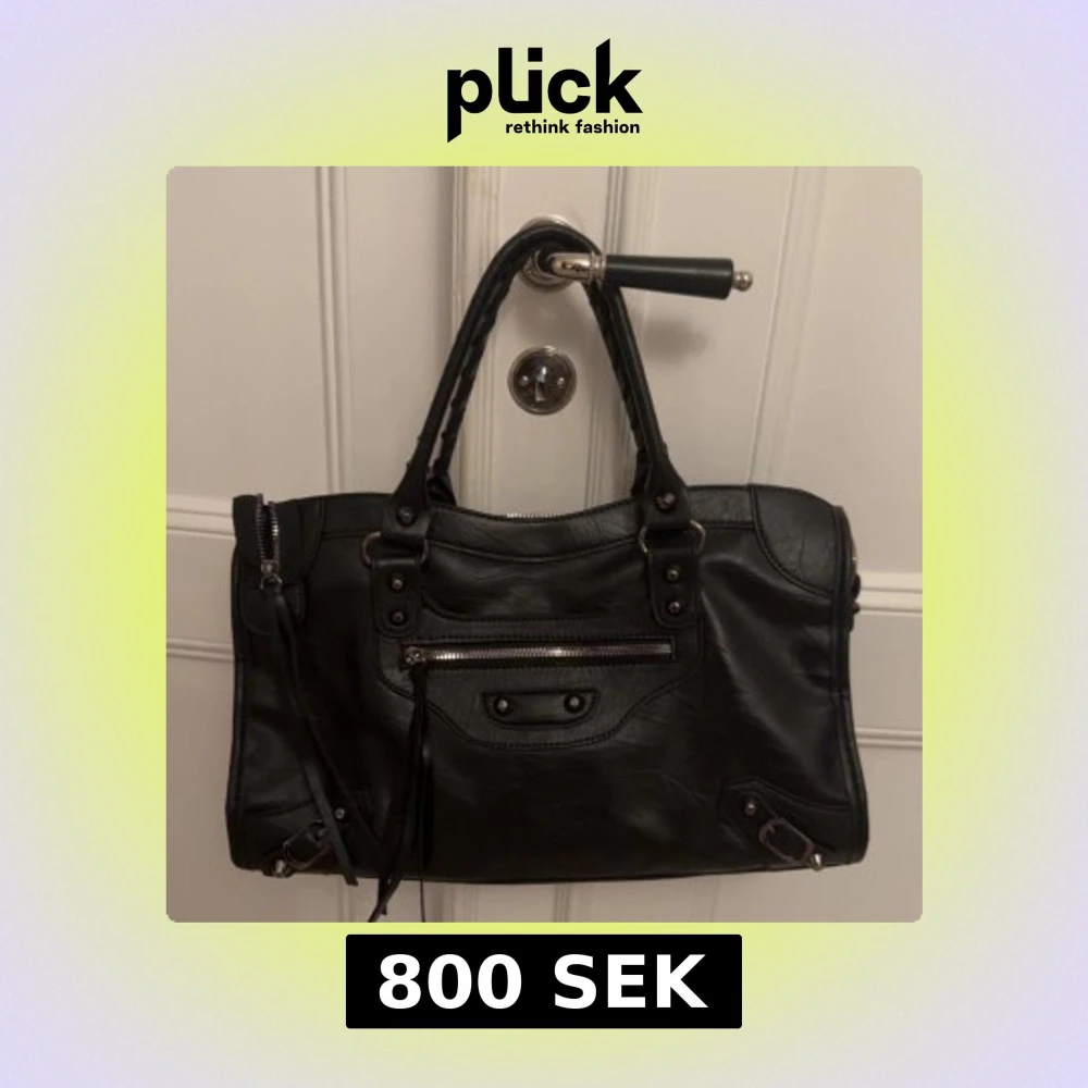 Snygg svart skinnväska med dragkedja och detaljerade sömmar. Väskan har två handtag och en praktisk dragkedja framtill. Perfekt storlek då den rymmer dator, böcker etc!! Måtten: 39x24 💗Jag kan gå ner lite i pris vid snabb affär💗😇väldigt eftertraktad