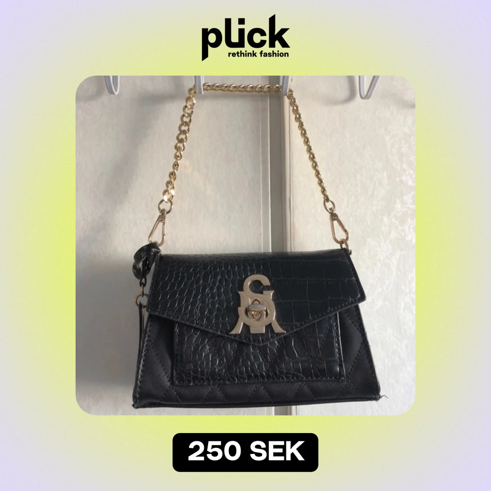 Snygg svart axelväska i skinnimitation med krokodilmönster och quiltade detaljer. Väskan har en elegant guldkedja som axelrem och ett dekorativt guldfärgat lås framtill. Perfekt för både vardag och fest! Stevemadden