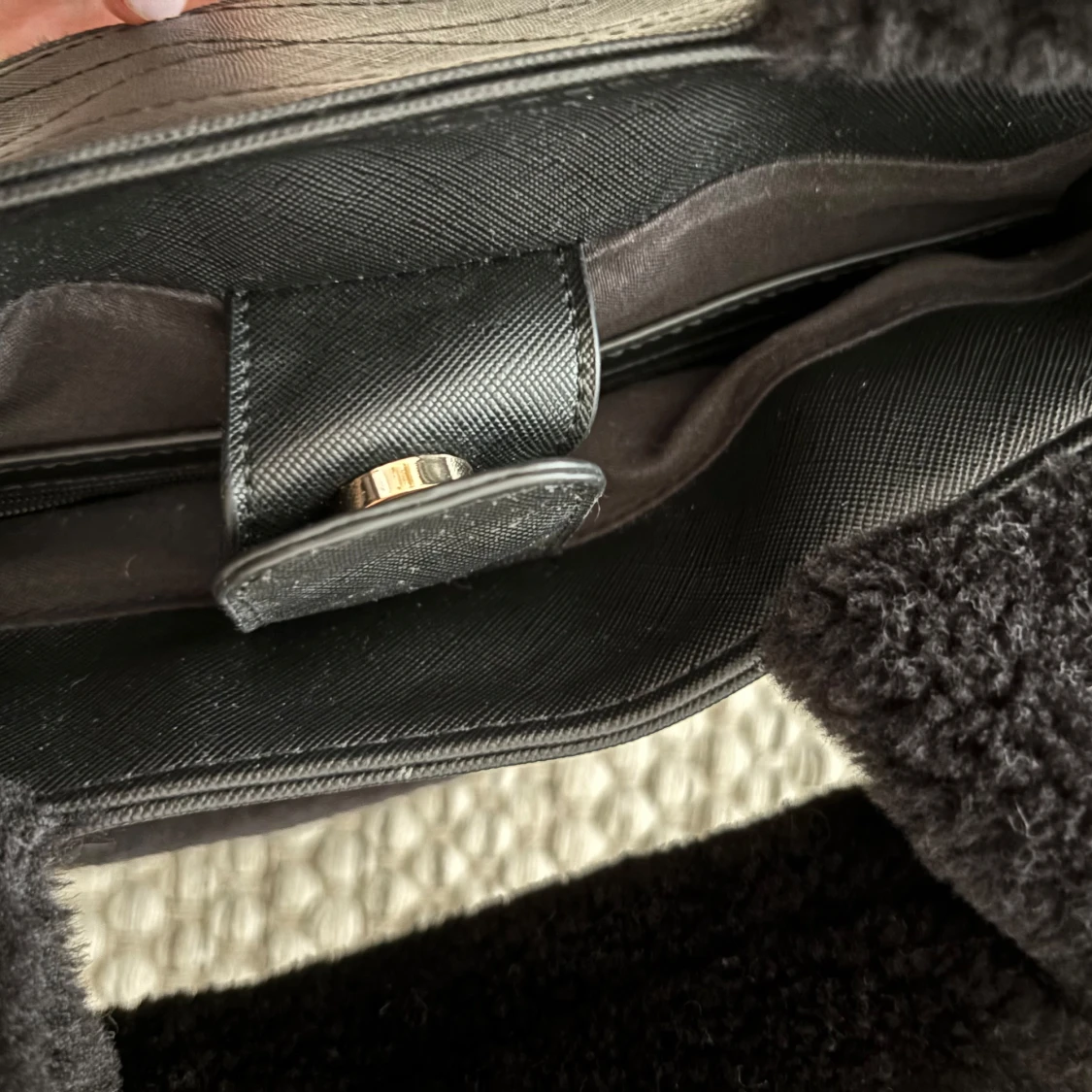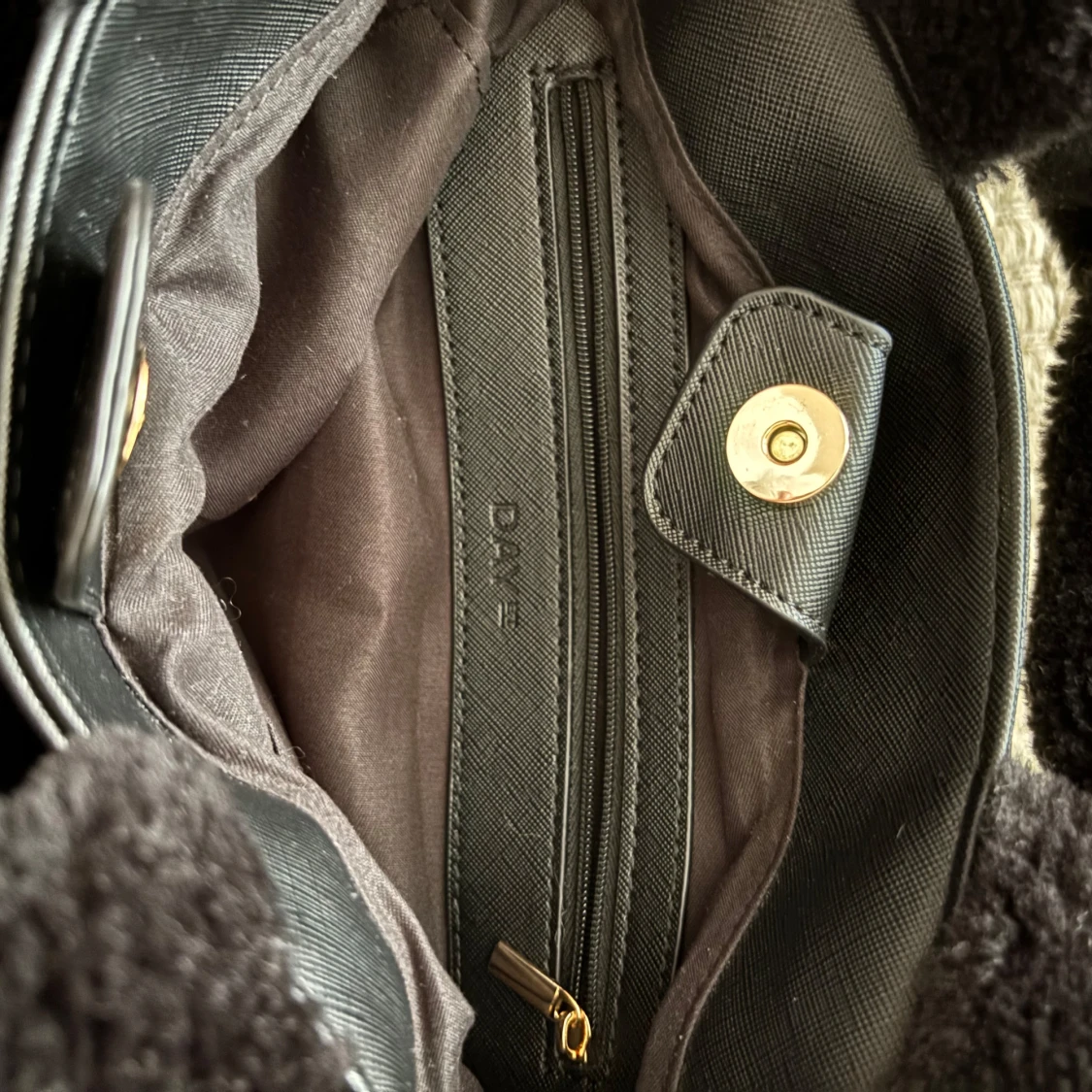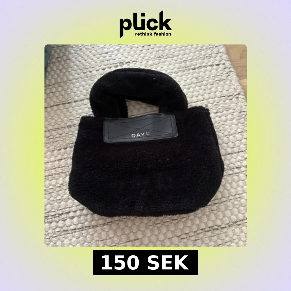 Supermjuk svart handväska från DAY ET i teddy-material med korta handtag och snygga detaljer i svart skinnimitation. Väskan har magnetlås och innerfack med dragkedja, perfekt för att hålla ordning på dina grejer. Aldrig använd men prislapp borttagen. Pris kan diskuteras.