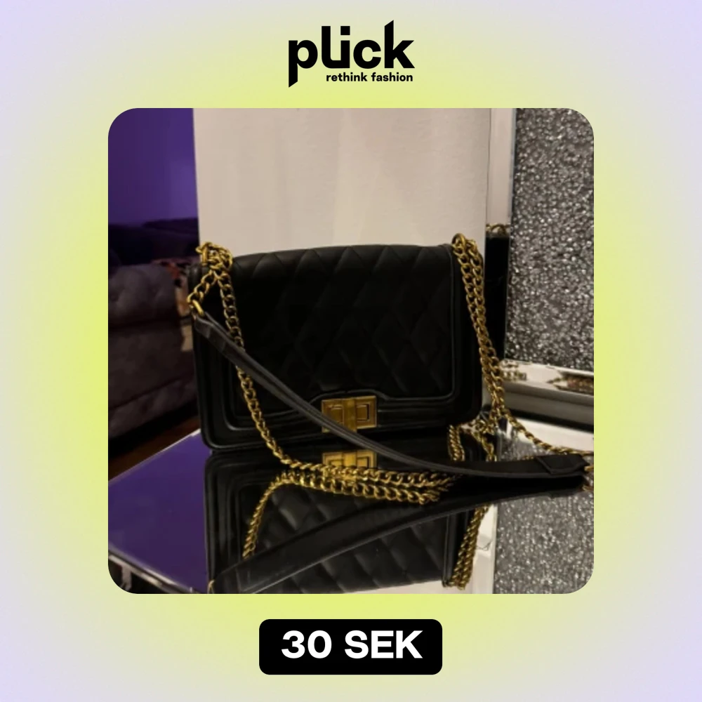 Svart väska med gulddetaljer. Från Gina Tricot🤍