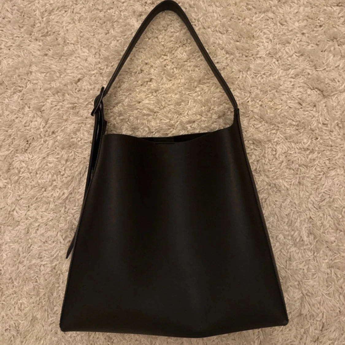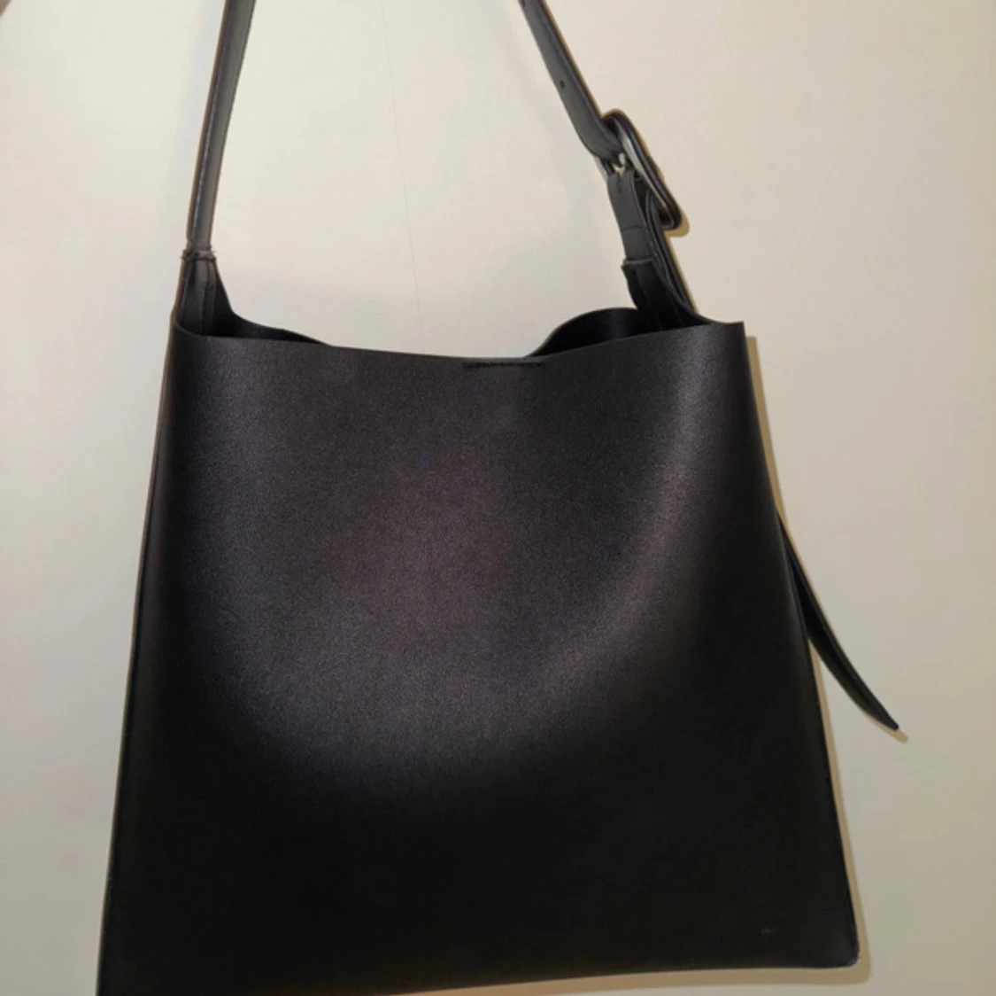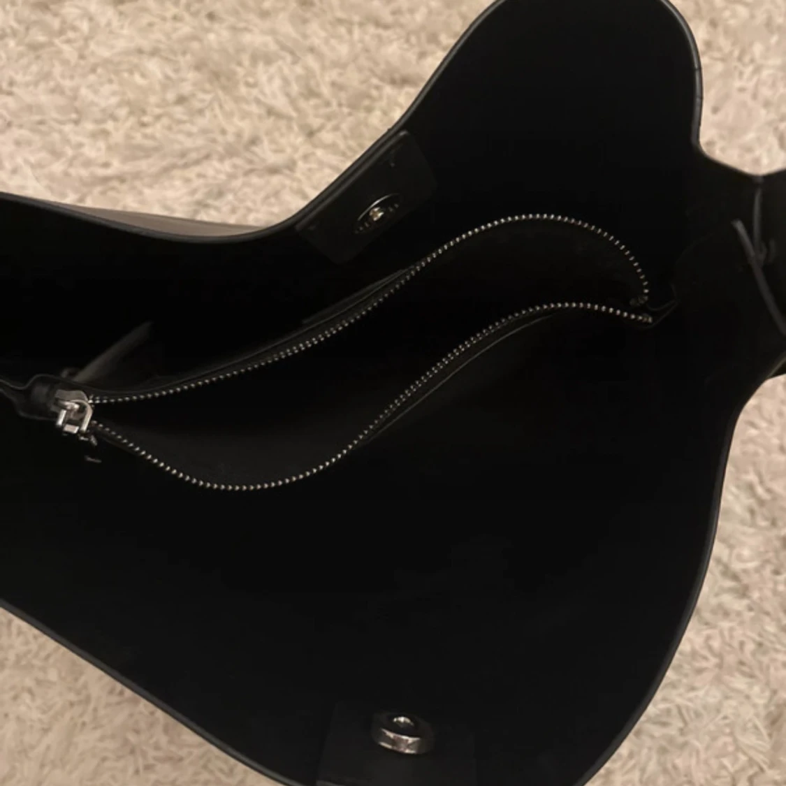 Stilren svart väska med justerbart axelband och magnetlås. Väskan har en rymlig insida och ett innerfack med dragkedja för extra säkerhet. Perfekt för dig som gillar minimalistisk och modern design. Perfekt nu till hösten🍁