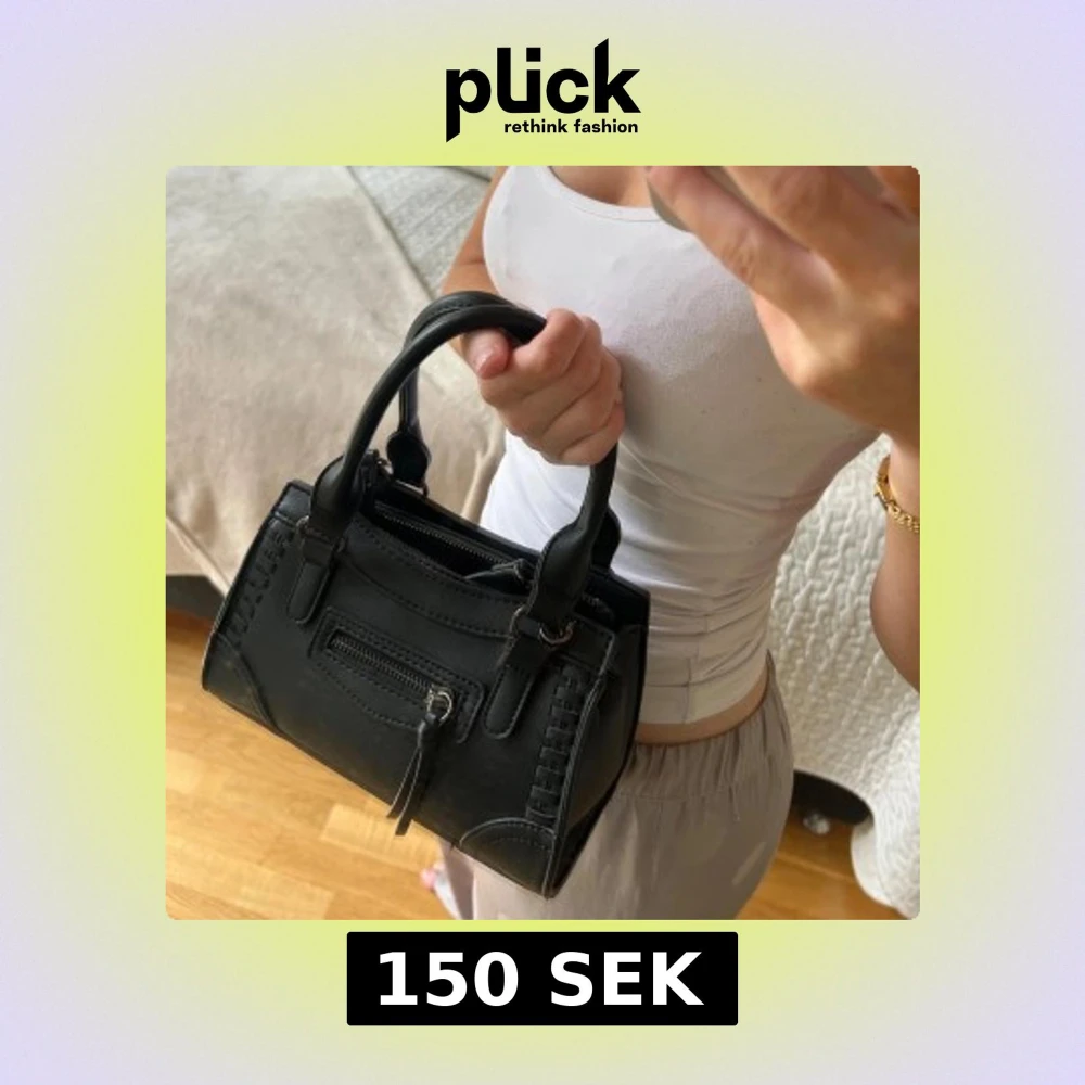 Svart väska med detaljer och dragkedja på ena sidan. Köpt på ginatricot. Små skavanker på några få ställen. En längre axelrem kommer med!😘💕