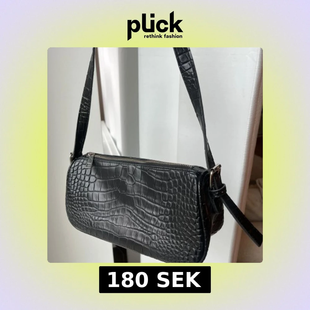 Snygg svart axelväska i krokodilpräglat mönster från Nelly. Väskan har en praktisk dragkedja upptill och en justerbar axelrem. Har ett innerfack för kort osv.