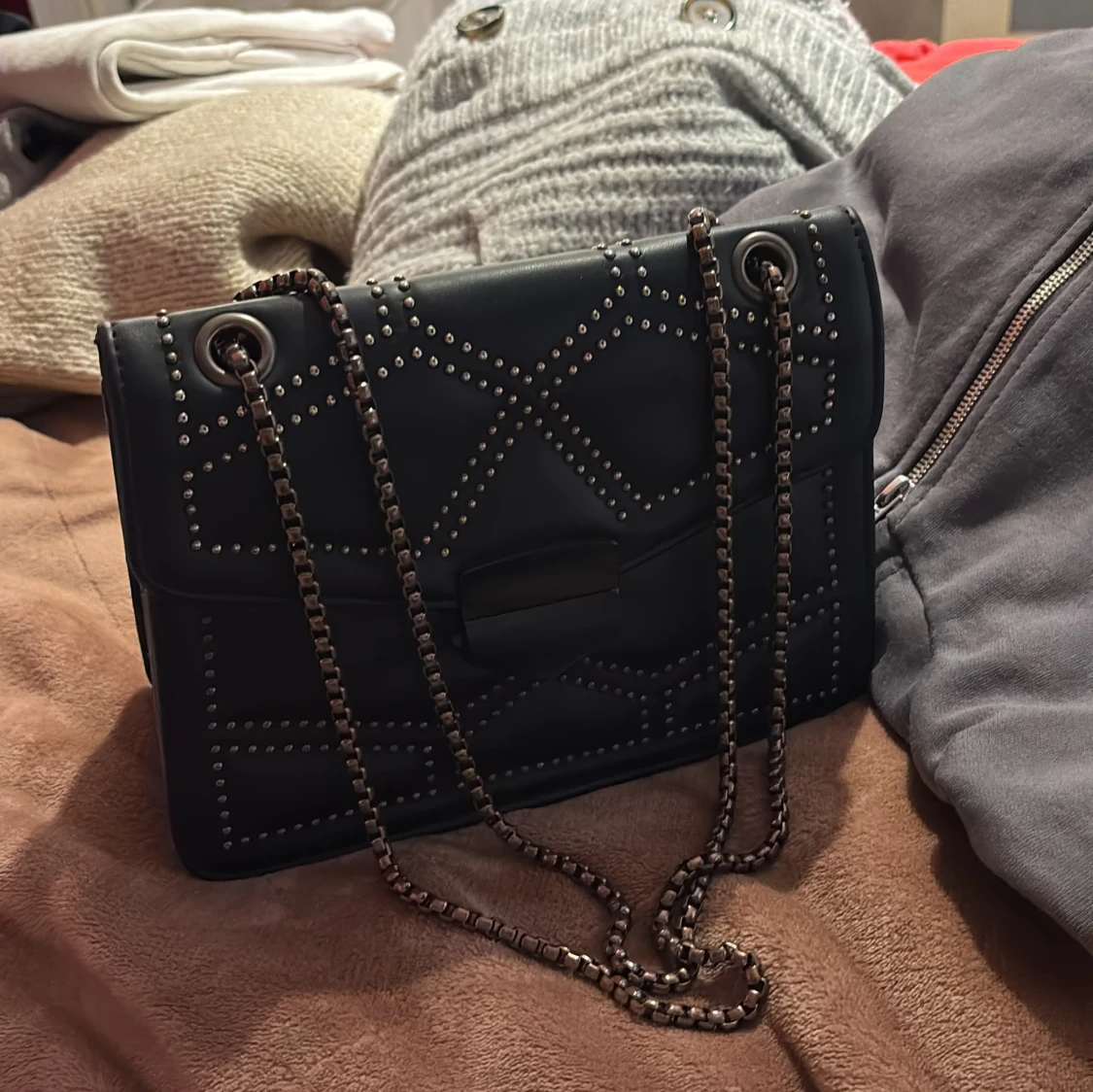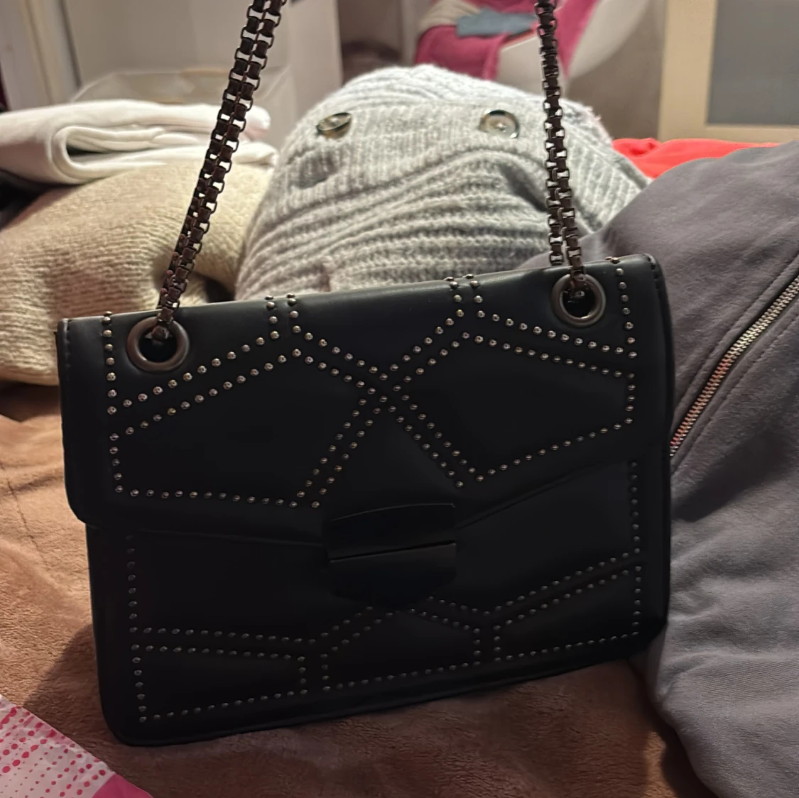 Svart axelväska med nitar