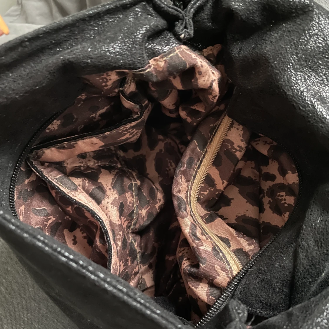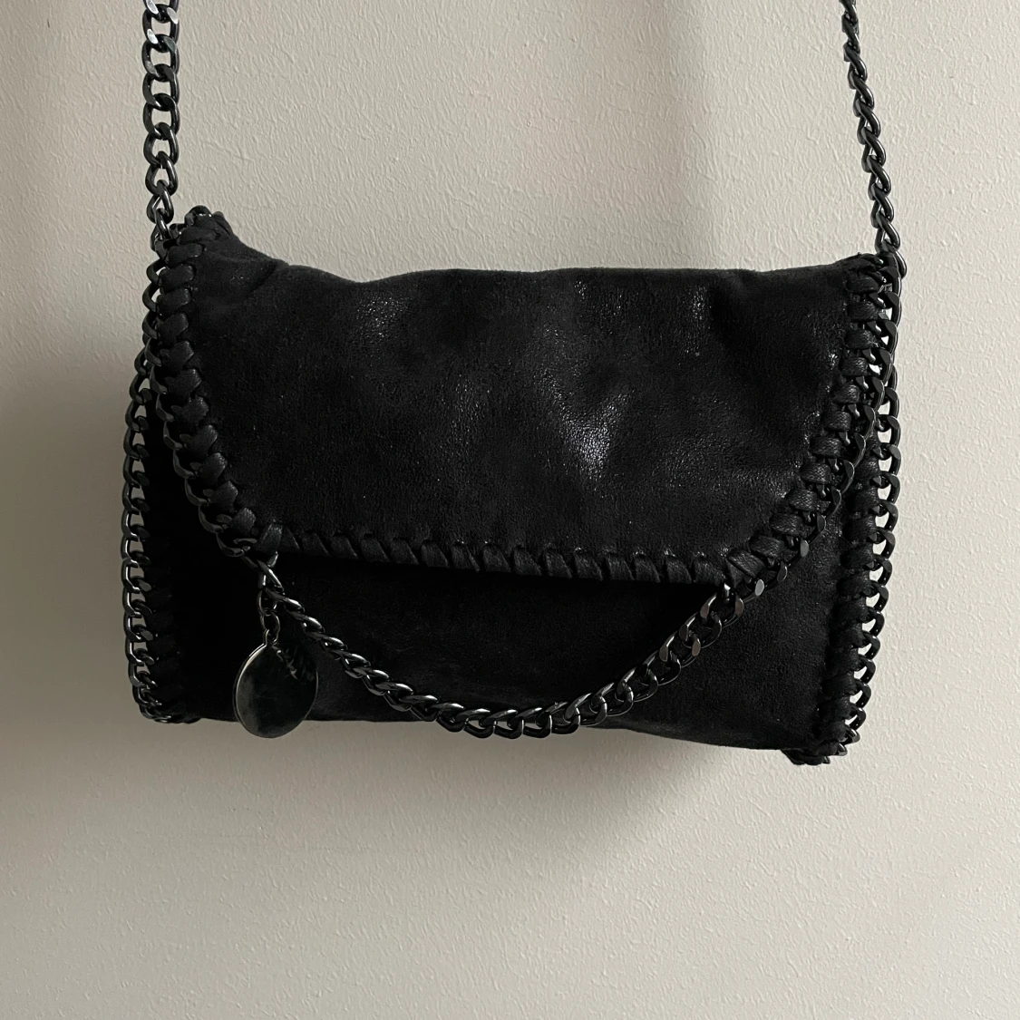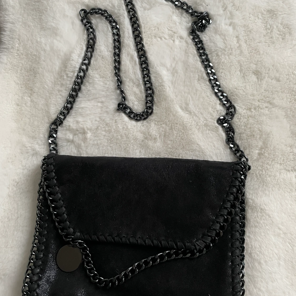 En svart väska med svart kedja som axelband! Insidan har 3 fickor en med dragkedja. Använt kanske 3ggr! Fint skick!