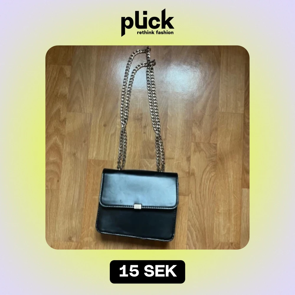 Svart väska med silver kedja från Åhléns, bilderna visar skick på väskan