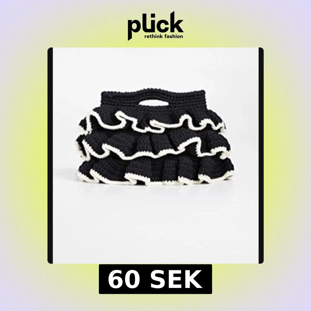 Charmig svart virkad handväska med volanger och vita detaljer. Helt nygjord! Ungefär 20-25cm bred och 15 hög🩷