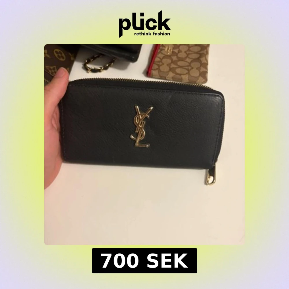 Snygg svart plånbok från YSL i äkta skinn med guldigt YSL-logo framtill. Plånboken har dragkedja runt om och stilren design som passar perfekt i väskan. Lyxig känsla och klassisk look.