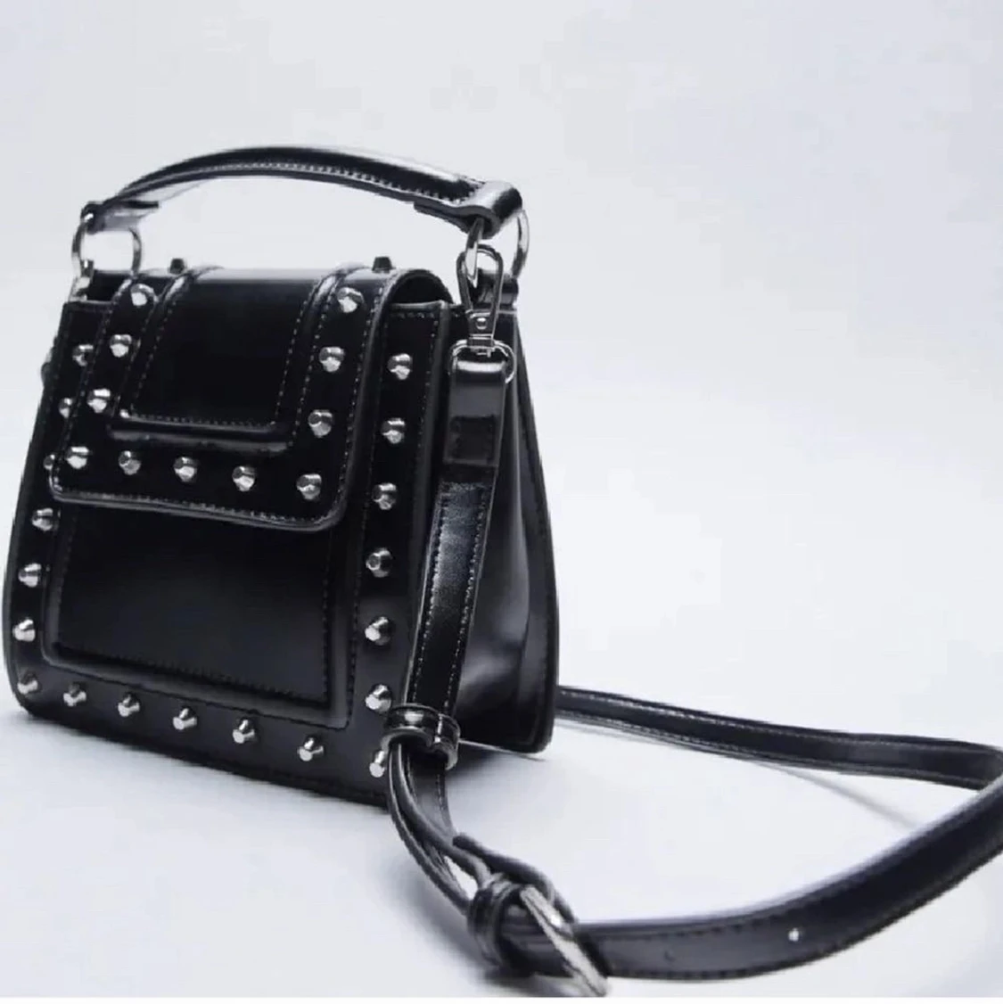 Säljer denna fina väska från zara. Dock utan ”handtaget” (se bild 2). Jättefint skick, inga repor/fläckar och alla nitar finns kvar🌸 skriv om ni har några frågor💕 OBS axelbandet är kvar. Priset är exklusive frakt
