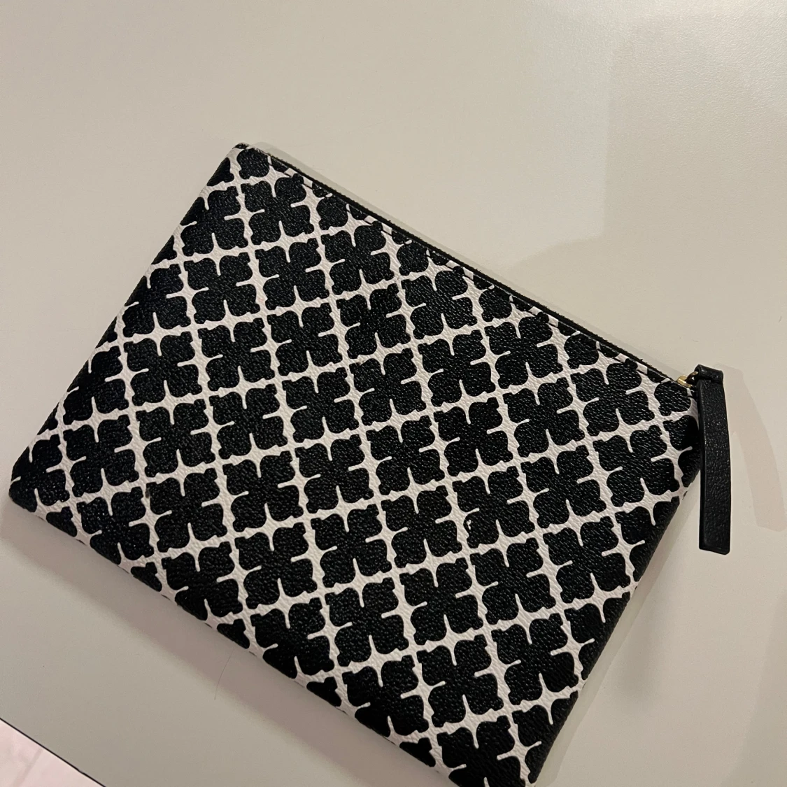 Snygg kuvertväska från Malene Birger i svartvitt mönster. Väskan har en praktisk dragkedja och ett stilrent mönster som ger en elegant touch. Perfekt för att bära med sig det nödvändigaste.