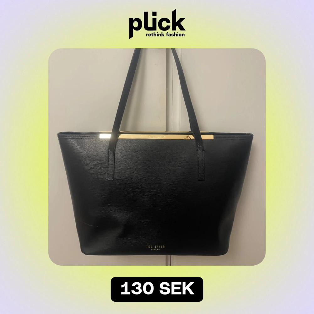 Svart axelväska från Ted Baker med gulddetaljer upptill. Inga slitage på handtagen. På bilden reflekterar ljuset lite på väskan, det är ingen avfärgning.