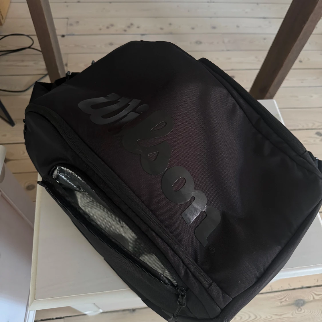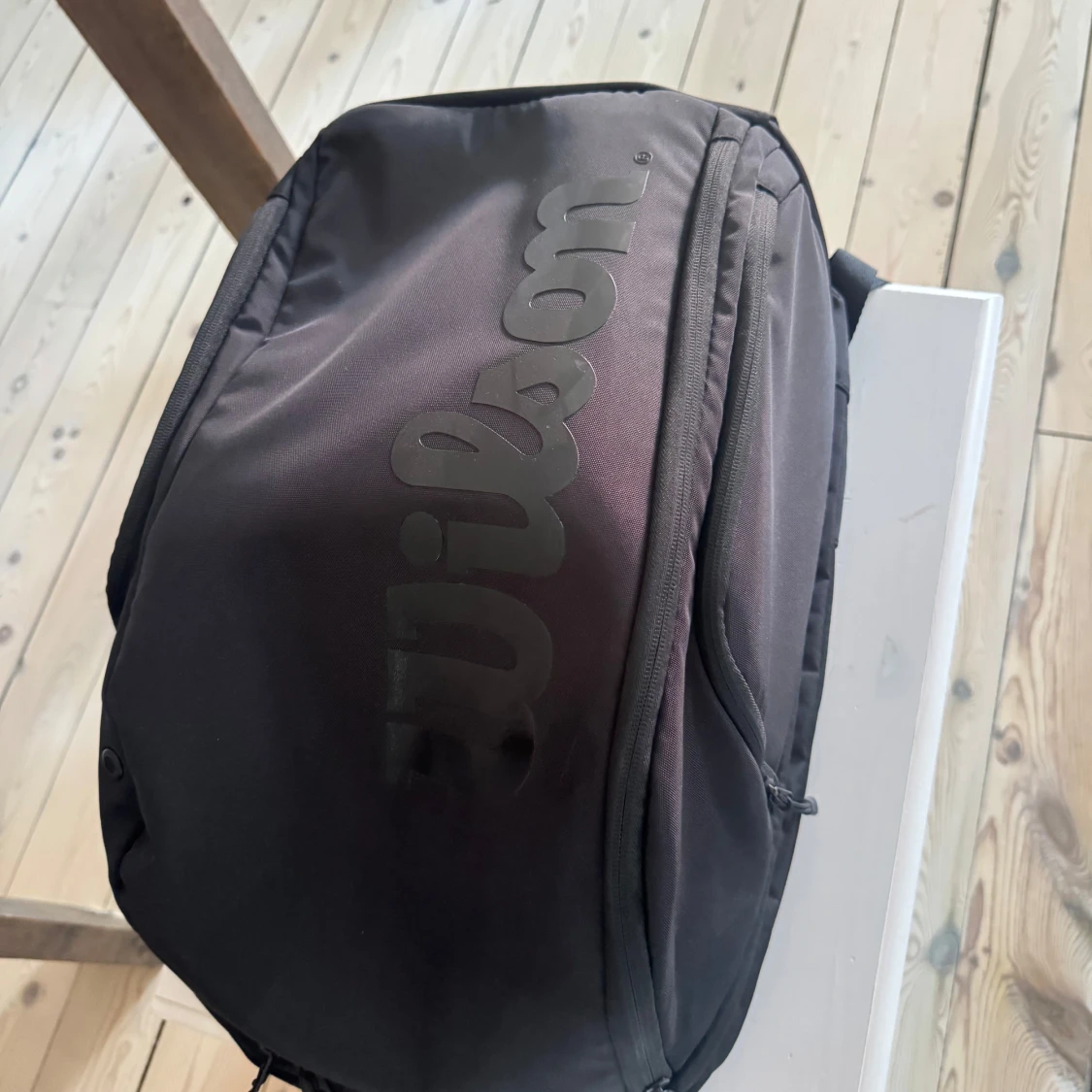 Rymlig Wilson ryggsäck för tennis, padel eller annan sport i väldigt bra skick! Snygg och stilren design utformad för att matcha Pro Staff serien av Wilson Tennisracketar. Väldigt sparsamt använd utan särskilt synliga tecken på användning.