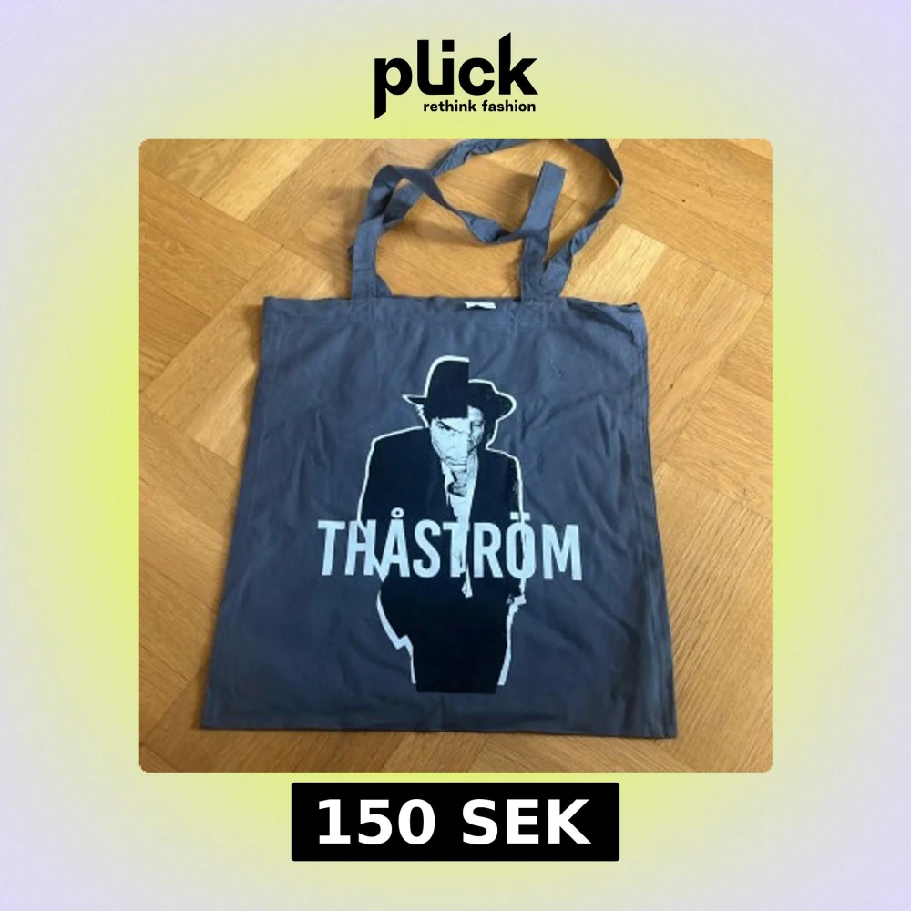 Grå shoppingväska med Thåström-tryck