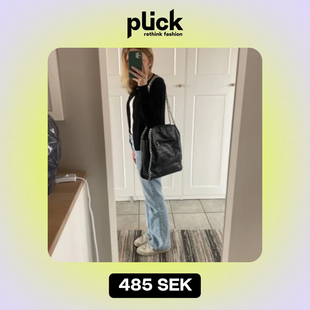 En perfekt väska i fint skick i svart fejk läder med kedja. Bara använd 1 termin. Får plats med dator och mycket mer! Köptes för 600 på scorett. Bara att kontakta vid frågor❤️