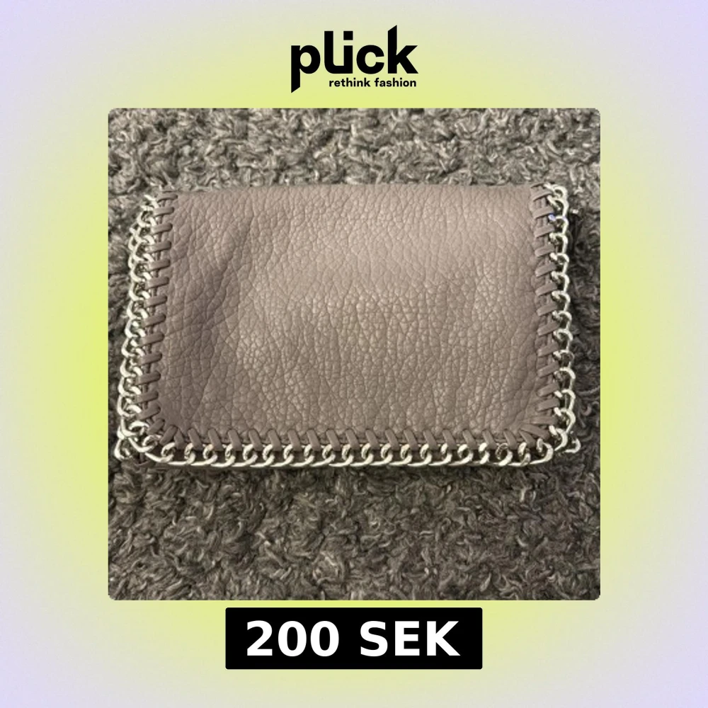 Snygg grå axelväska i skinn med coola kedjedetaljer runt kanterna. Väskan har en praktisk dragkedja på baksidan och en rymlig insida med extra fack. Perfekt för att ge din outfit en edgy touch! Endast lite skadad på baksida!