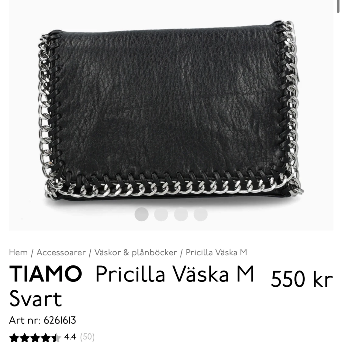 En fin väska från Tiamo i svart! Mycket bra skick och säljs för att den inte kommer till användning. Skriv för frågor eller fler bilder. Köpt gör 550kr.