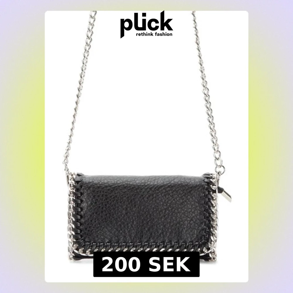 Svart axelväska i skinn med grov silverkedja runt kanterna och som axelrem. Väskan är från tiamo och nypriset är 500 kr. Jag har aldrig använt den eftersom den inte kommit till användning 🥰