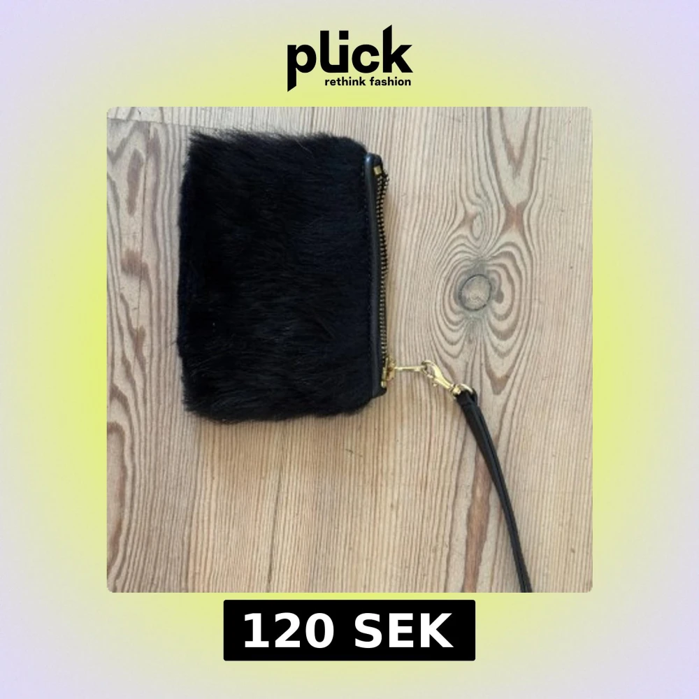 Snygg svart plånbok från Tiger of Sweden med pälsig framsida och baksida i präglat skinn. Guldiga detaljer och dragkedja, samt avtagbar handledsrem. Perfekt för att bära det viktigaste med stil.