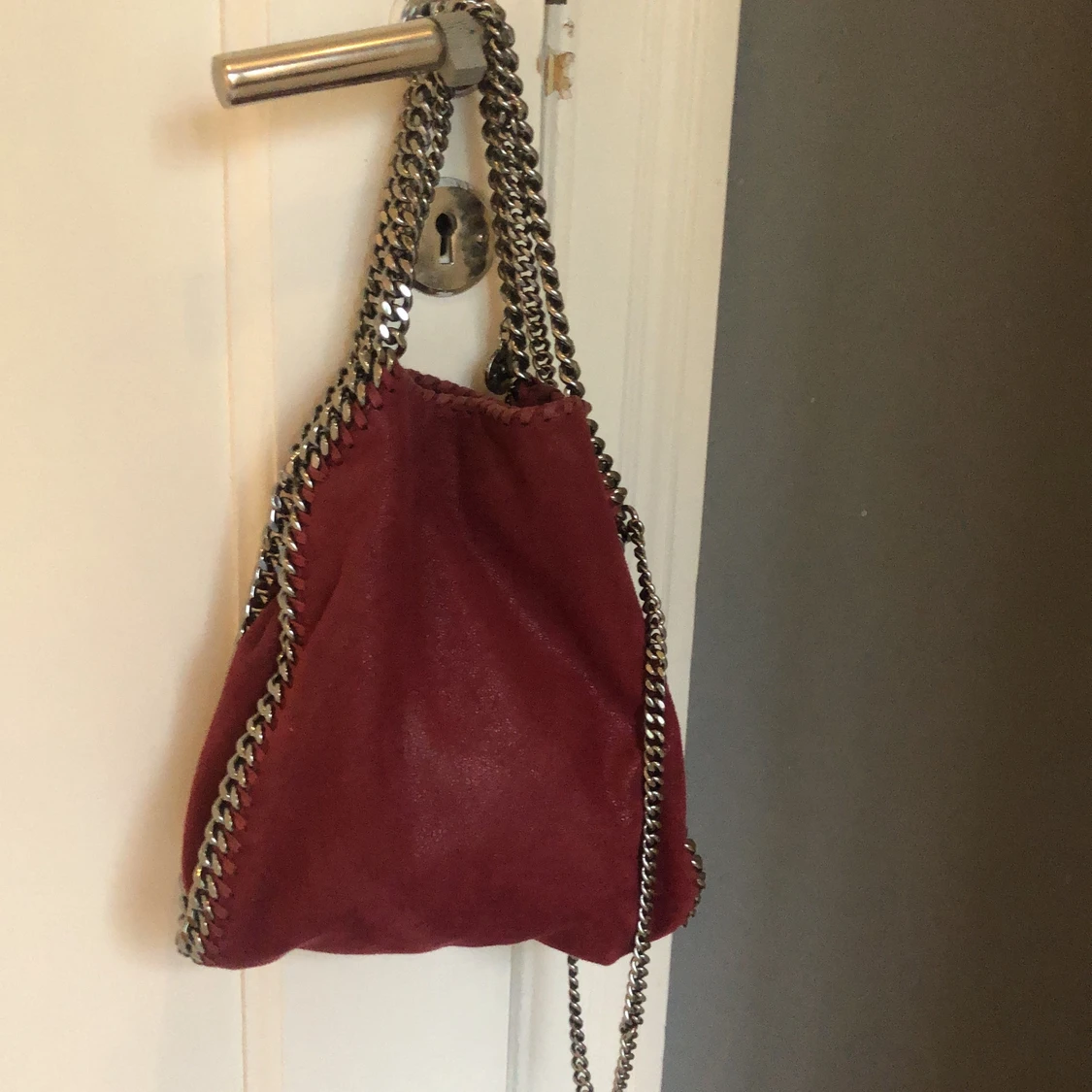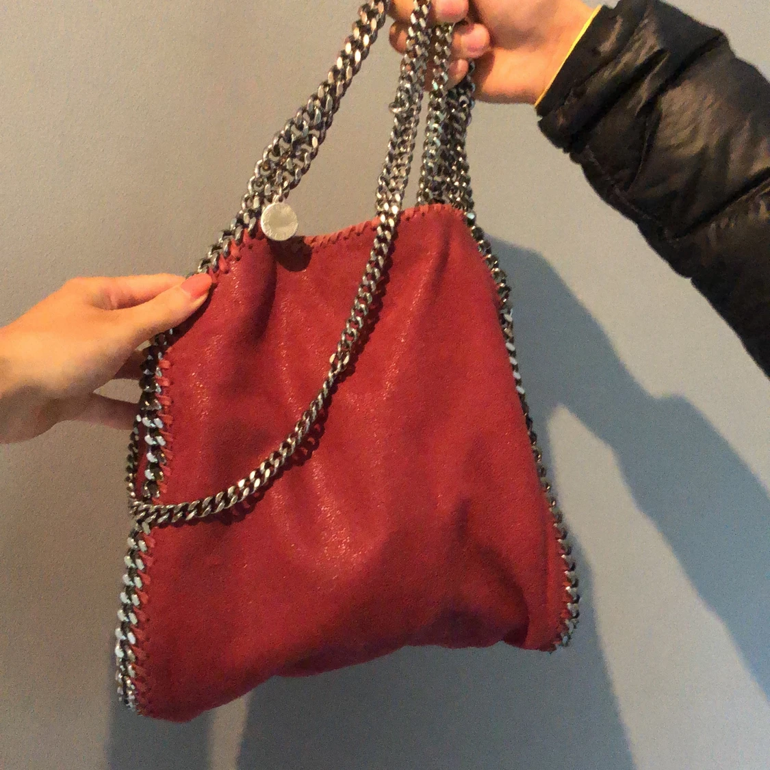Röd mini falabella bag med silver kedja, knappt använd, kommer med märkesbevis kvitto och totebag! Ursprungligt pris; 6 620kr. Inga byten tack!!
