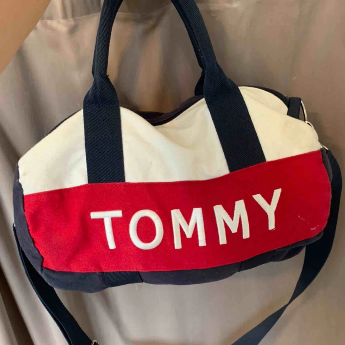 Väska Storlek: 32 cm lång 22 cm hög, 20 cm bred Röd, blå, vit Normalt skick Passa bra för gymmet eller en övernattning