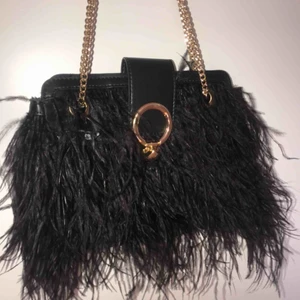 Helt oanvänd väska från Topshop med svarta fjädrar. 40kr+ frakt