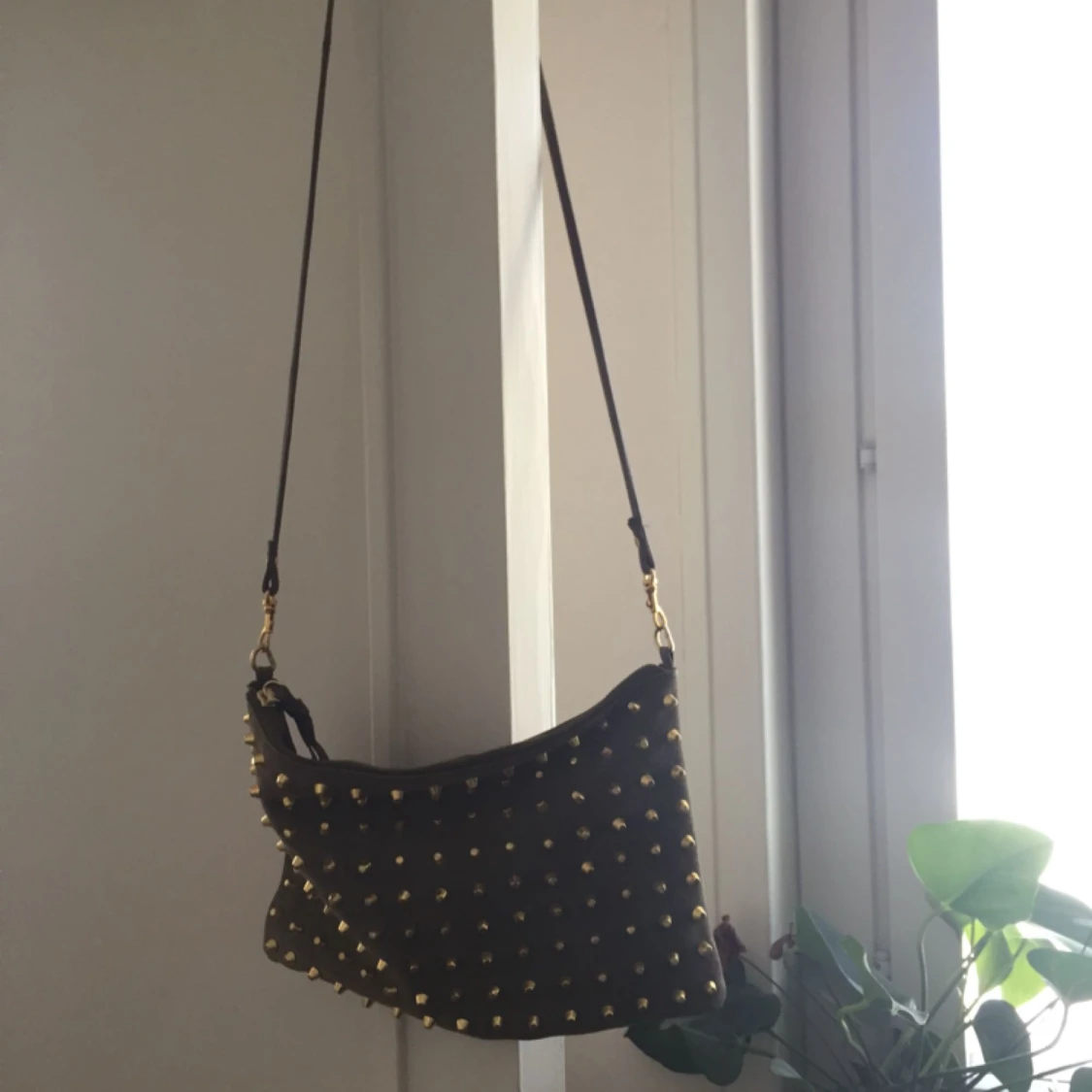 Jättefin mörkgrön mocka/läderväska med guldiga nitar från topshop! Fint skick. Köparen står för frakten 💫