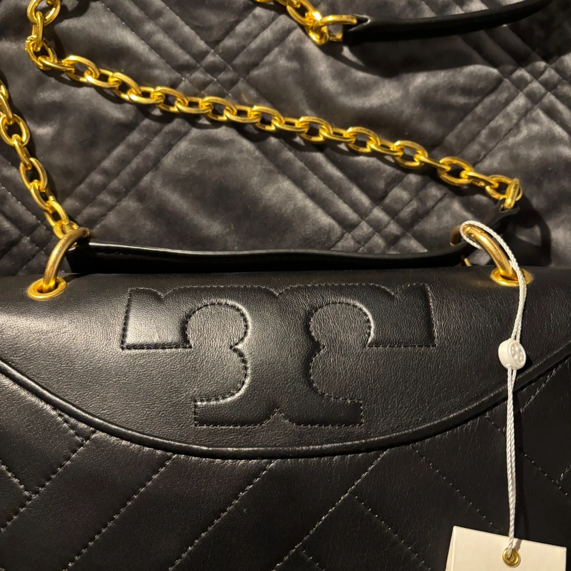 Väldigt fin läderväska från Tory Burch av äldre modell som inte längre säljs. Väskan är oanvänd och därmed i nyskick utan några som helst defekter. Prislappen finns kvar.