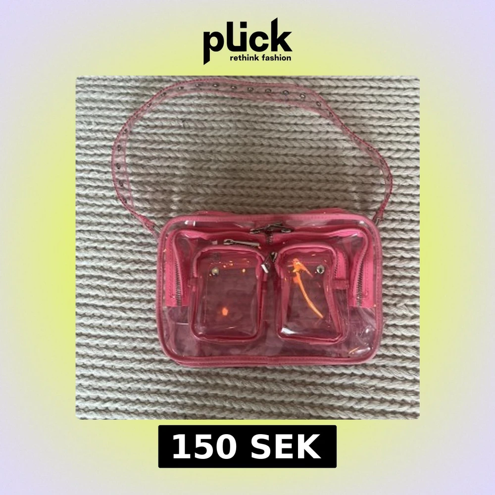 Säljer en transparent rosa axelväska från Núnoo med justerbart axelband och flera fack med dragkedja. Väskan har coola silvriga detaljer och två mindre fickor framtill. Perfekt för dig som vill sticka ut med en unik och trendig väska.Har inte använt den har ingen pris lap när jag köpte den i affären.