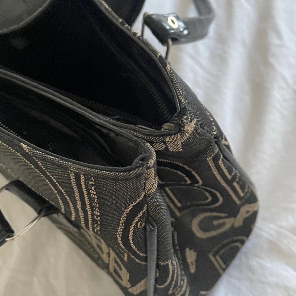 Fin vintage väska. Bra skick, några enstaka slitskador i hörn men axelbanden är fina. Sitter snyggt på axeln. Två stora fack med blixtlås. Svarar gärna på frågor.