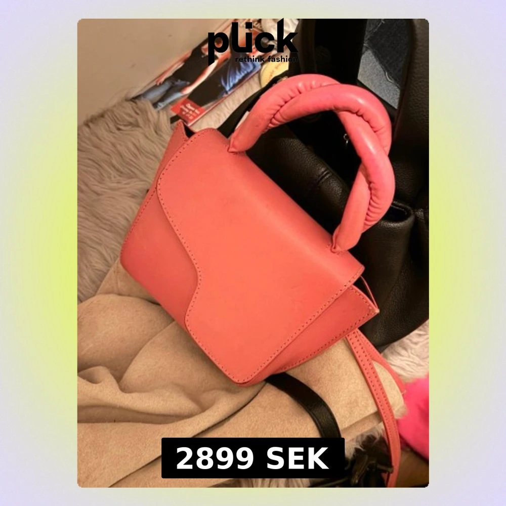 Säljer en superfin rosa axelväska med unikt twistat handtag och asymmetrisk lock. Väskan har en clean look och är gjord i slätt syntetmaterial. Perfekt storlek för det viktigaste och har en lång axelrem så du kan bära den crossbody.