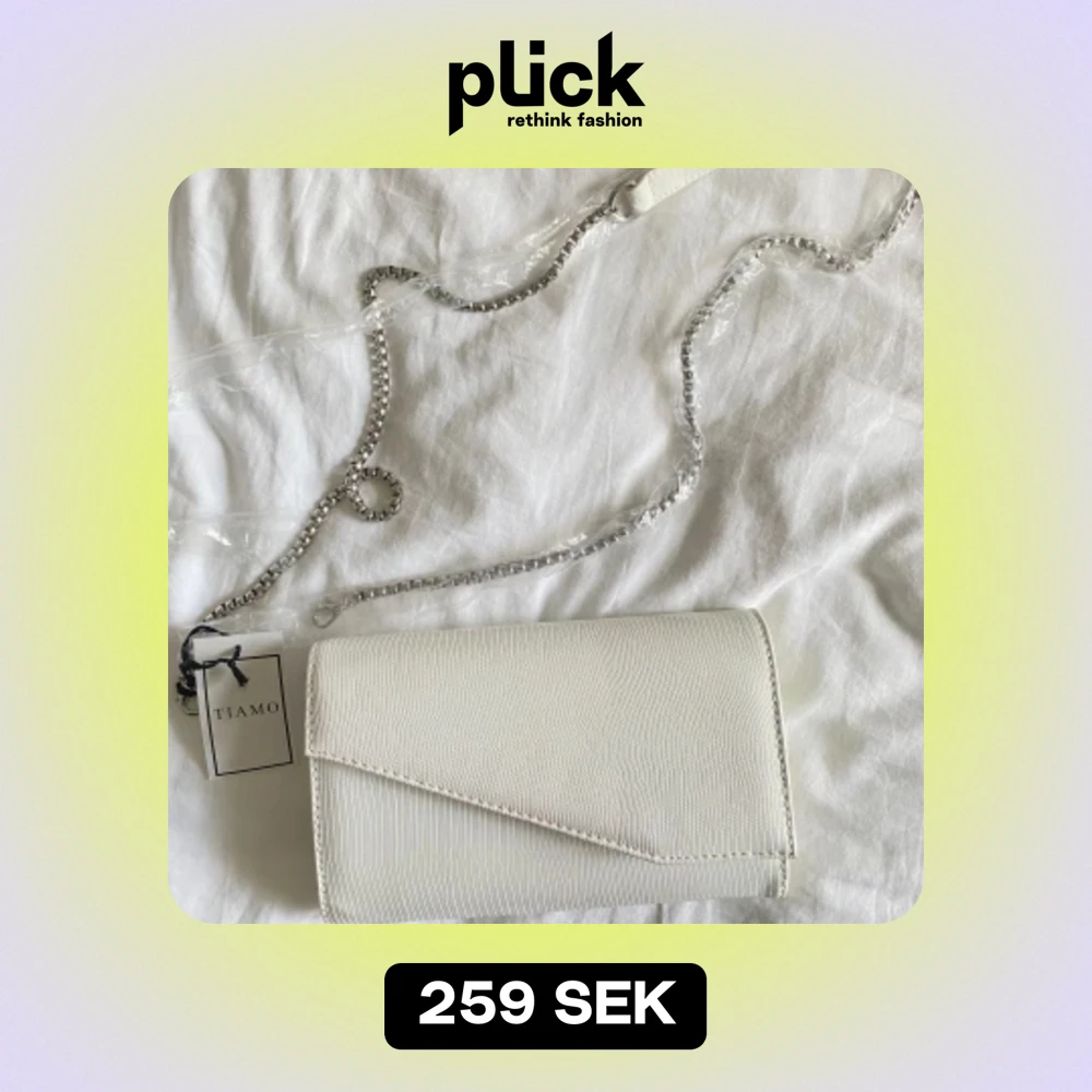 Säljer denna vita clutch väska, använd en gång är som ny. Bandet som tillkommer är inte använt alls. Ny pris 500kr, mitt pris 259kr + frakt