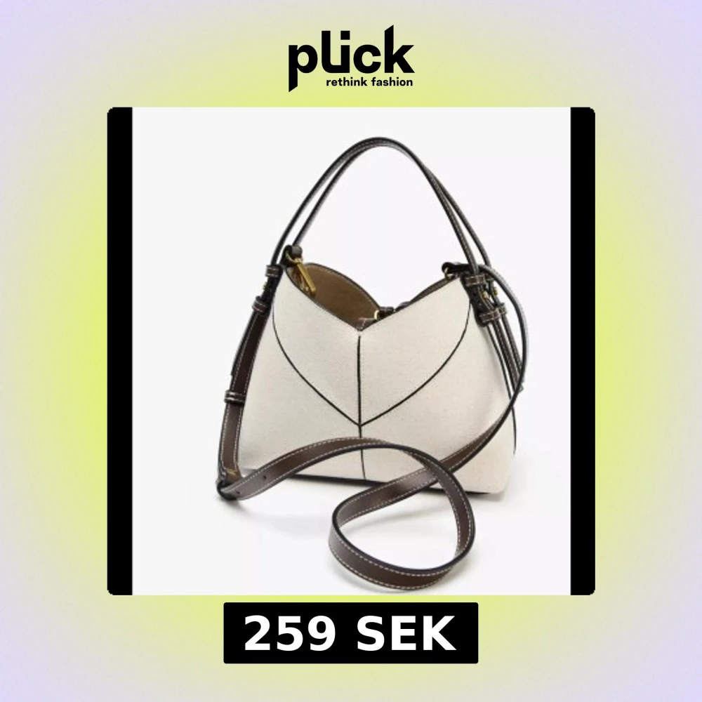 Snygg axelväska från Zara i vit canvas med bruna skinn-detaljer och svarta kontrastsömmar. Väskan har både handtag och justerbar axelrem, samt guldfärgade metalldetaljer. Perfekt storlek för det viktigaste och ger en clean, modern look. OANVÄND!!