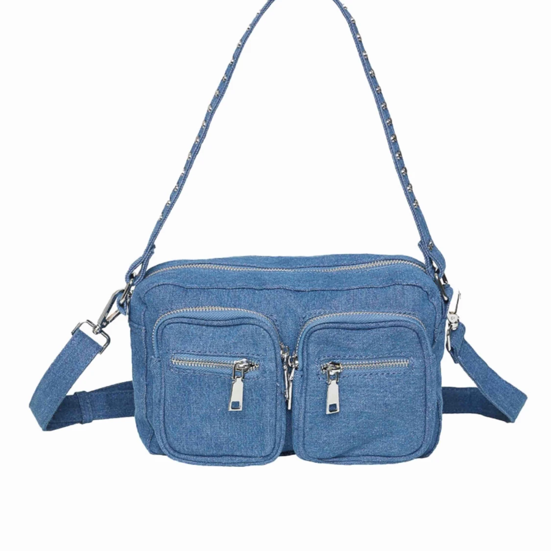Noellaväska i jeanstyg som säljs pga brist på användning. Bra skick förutom ett hål inuti väskan, dock inget som påverkar någon ficka el. liknande. Det långa bandet på första bilden sitter inte på men ingår självklart. Pris kan diskuteras (400 + frakt)