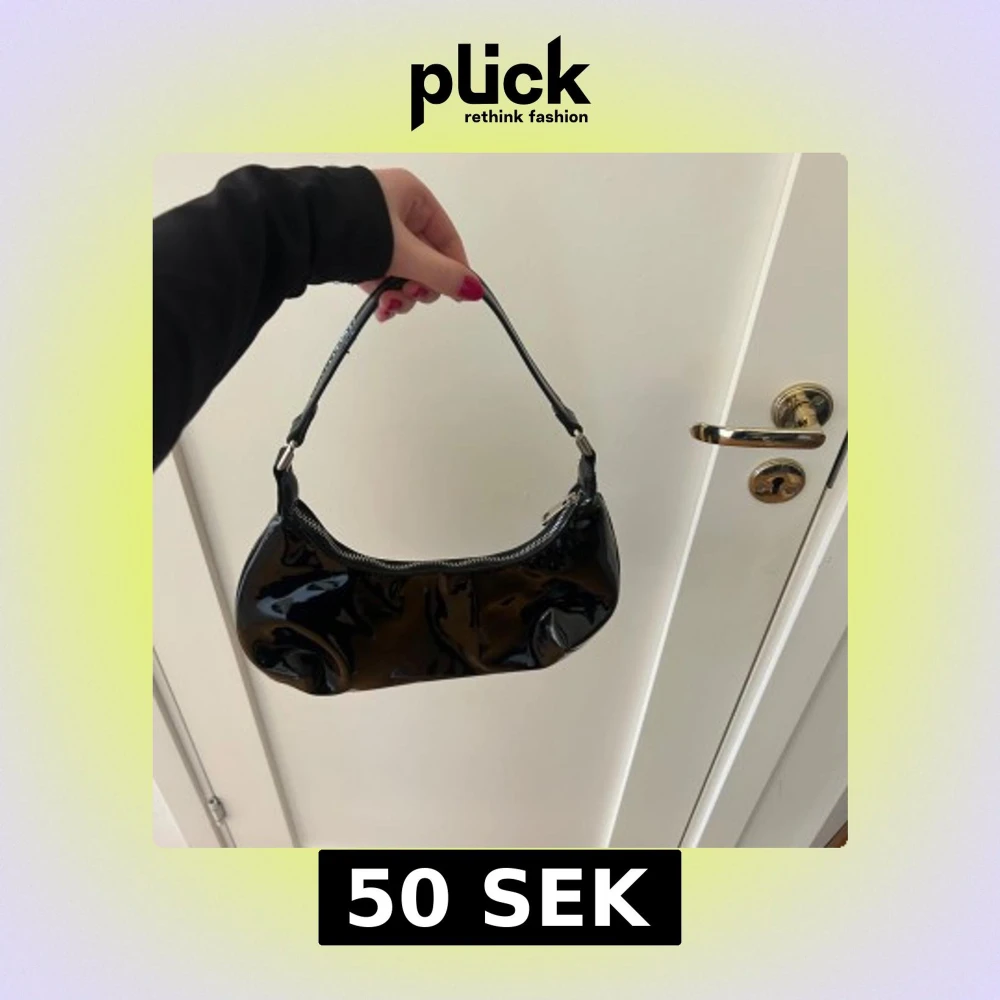 Skit snygg svart väska i glansigt material, perfekt att styla upp en outfit!