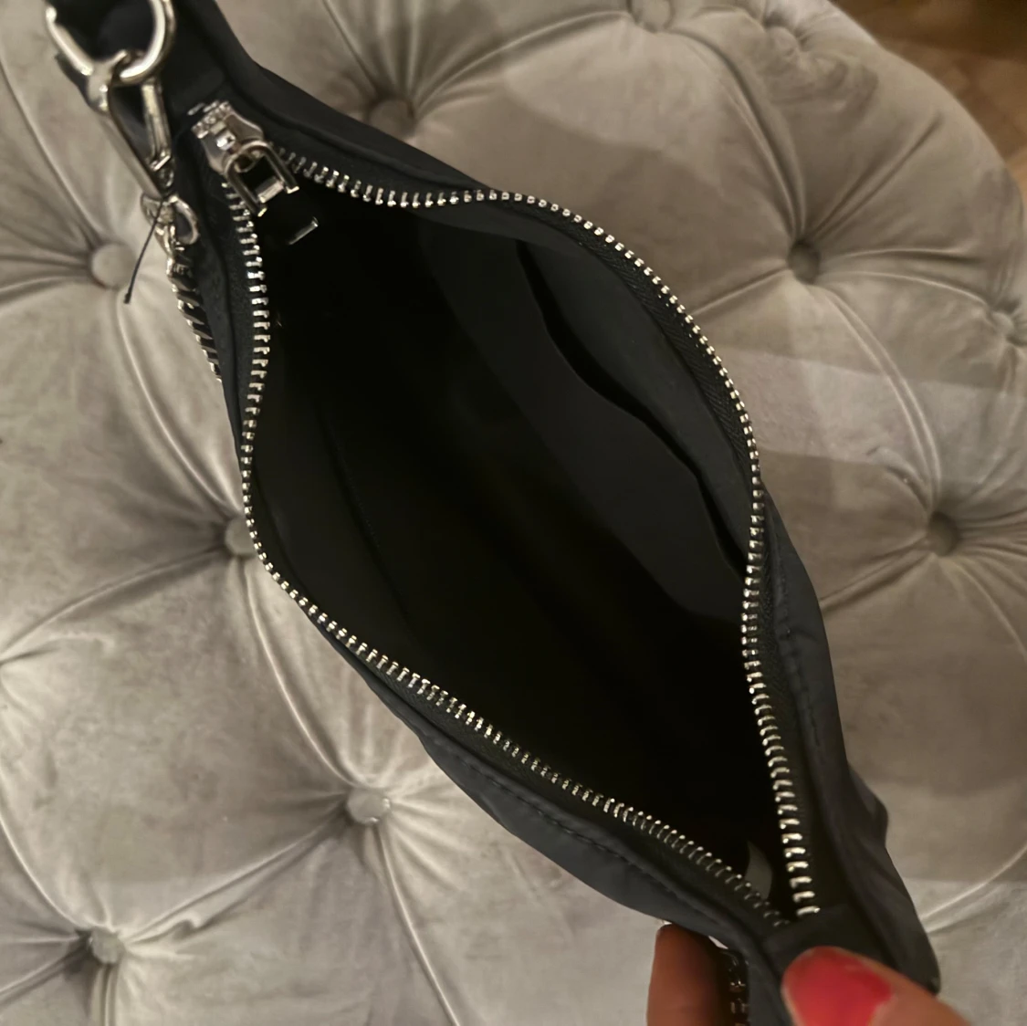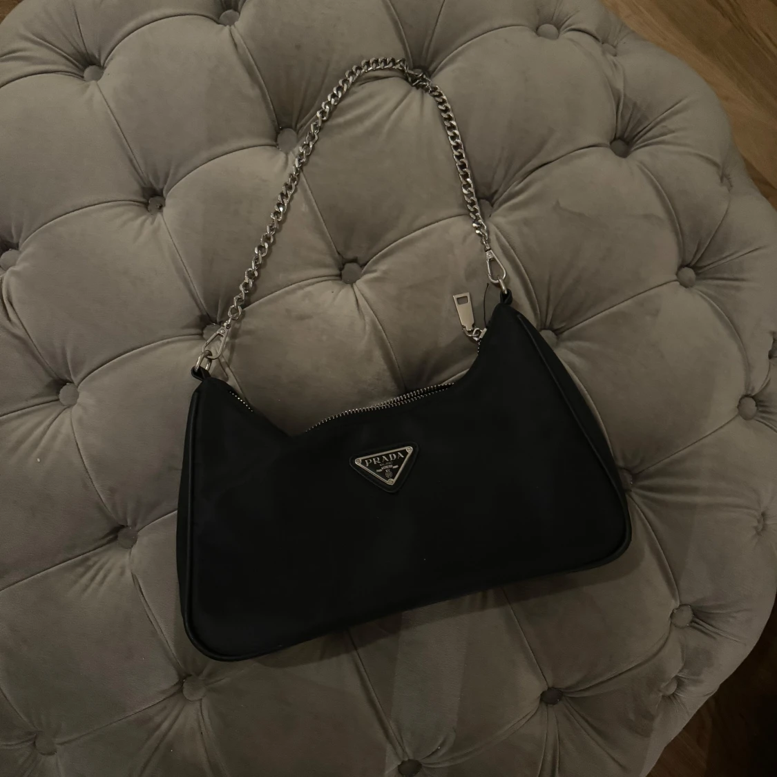 Snygg svart axelväska med en stilren kedja som axelrem. Väskan har en dragkedja upptill och är perfekt för både vardag och fest. Den är kompakt men rymmer det viktigaste. Perfekt för att ge din outfit en elegant touch!
